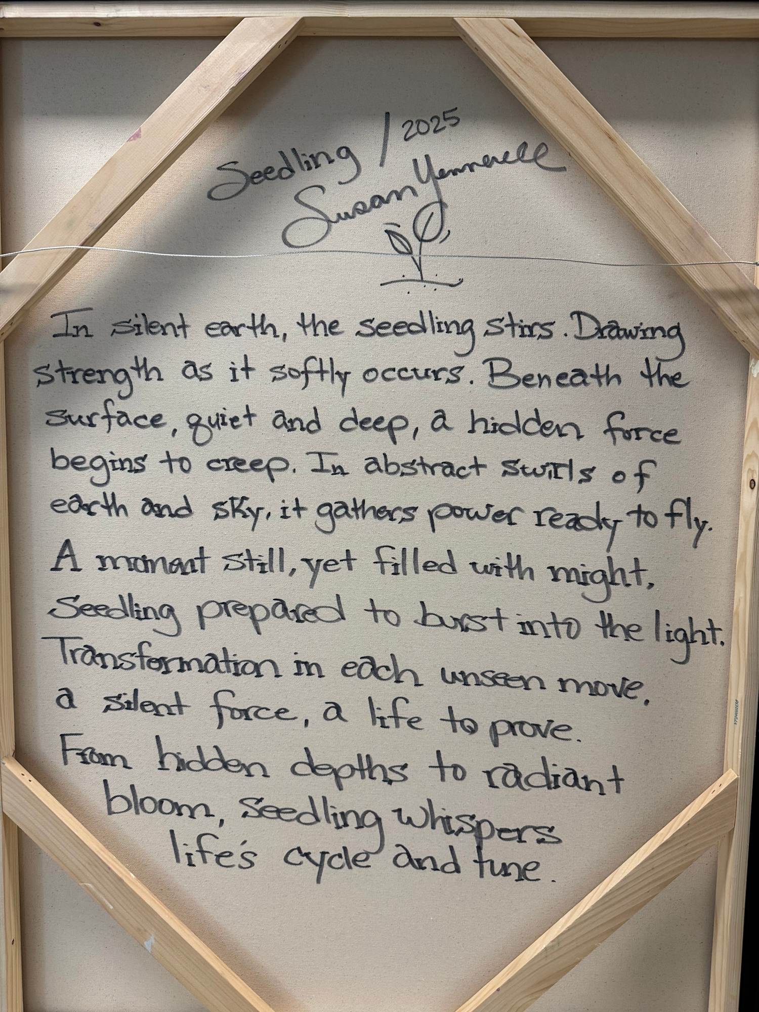 This painting is a meditation on the unseen work of growth - the perseverance beneath the surface, the sacred pause before emergence, and the vibrant unfolding of new life. Seedling invites the viewer to honor the invisible beginnings that make transformation possible.