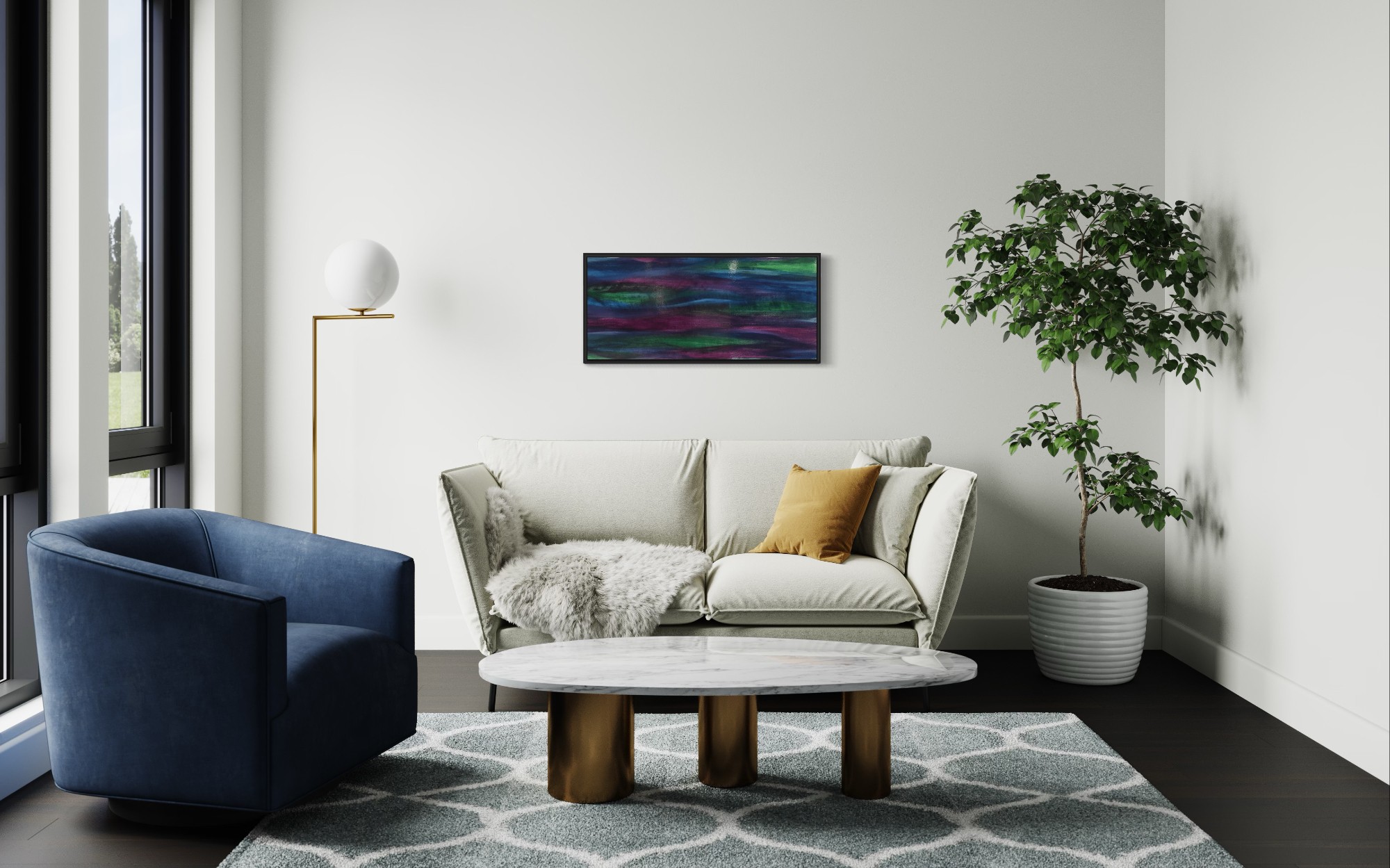 This beautiful blue and royal purple piece is soothing and vibrant all at the same time. Crystal Blue waters, or the dark night of sky – it can be your vision of what you need it to be.
