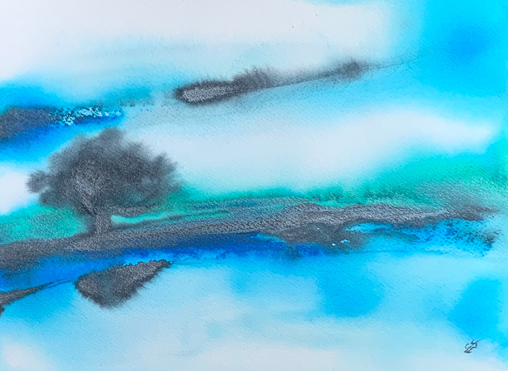 A beautiful blue lagoon where you can rest your soul, grab an umbrella drink and relax. I hope the painting brings you that island vibe...