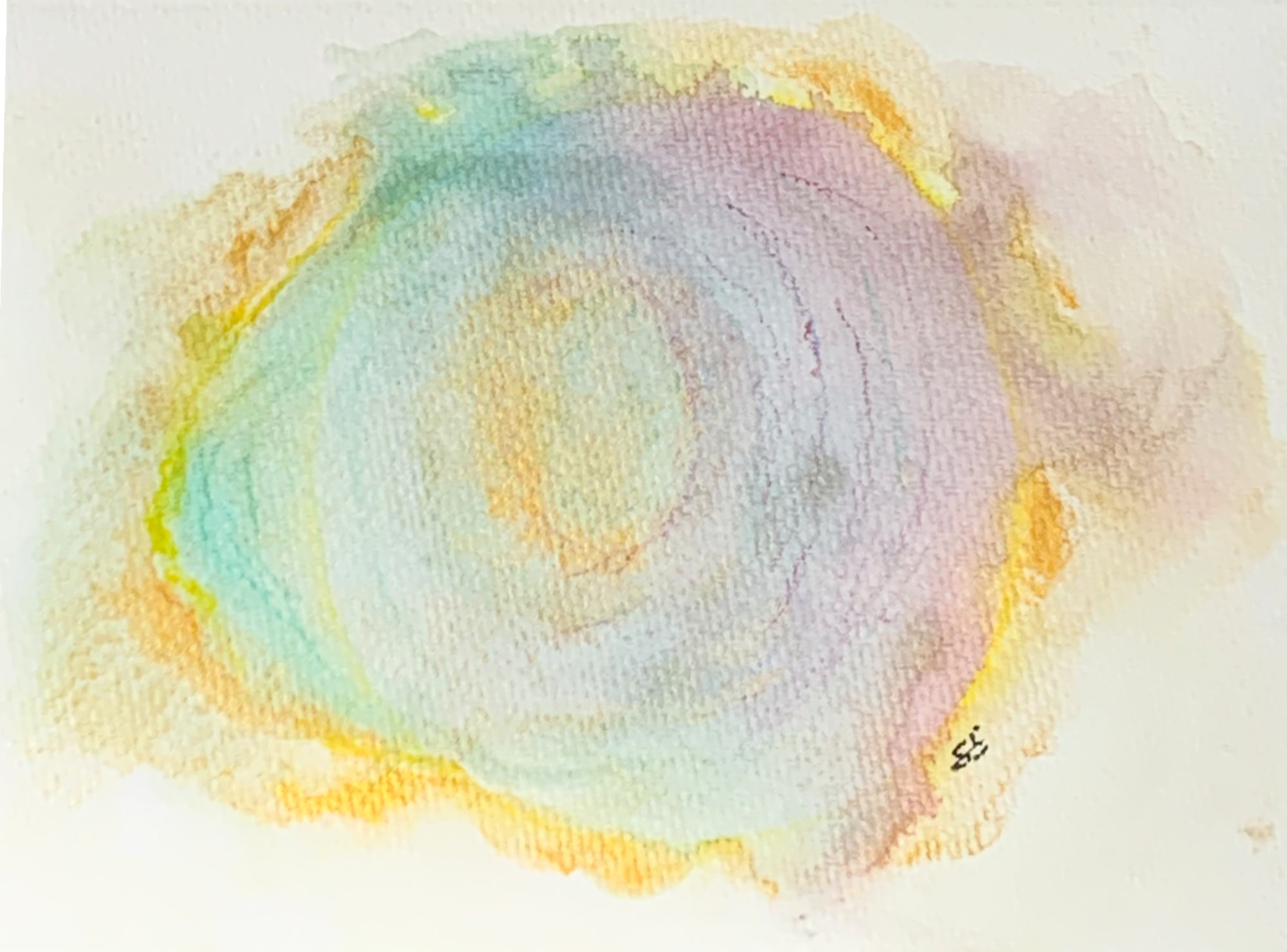 A swirling painting resembling an agate, it wants to take you in and make you believe.