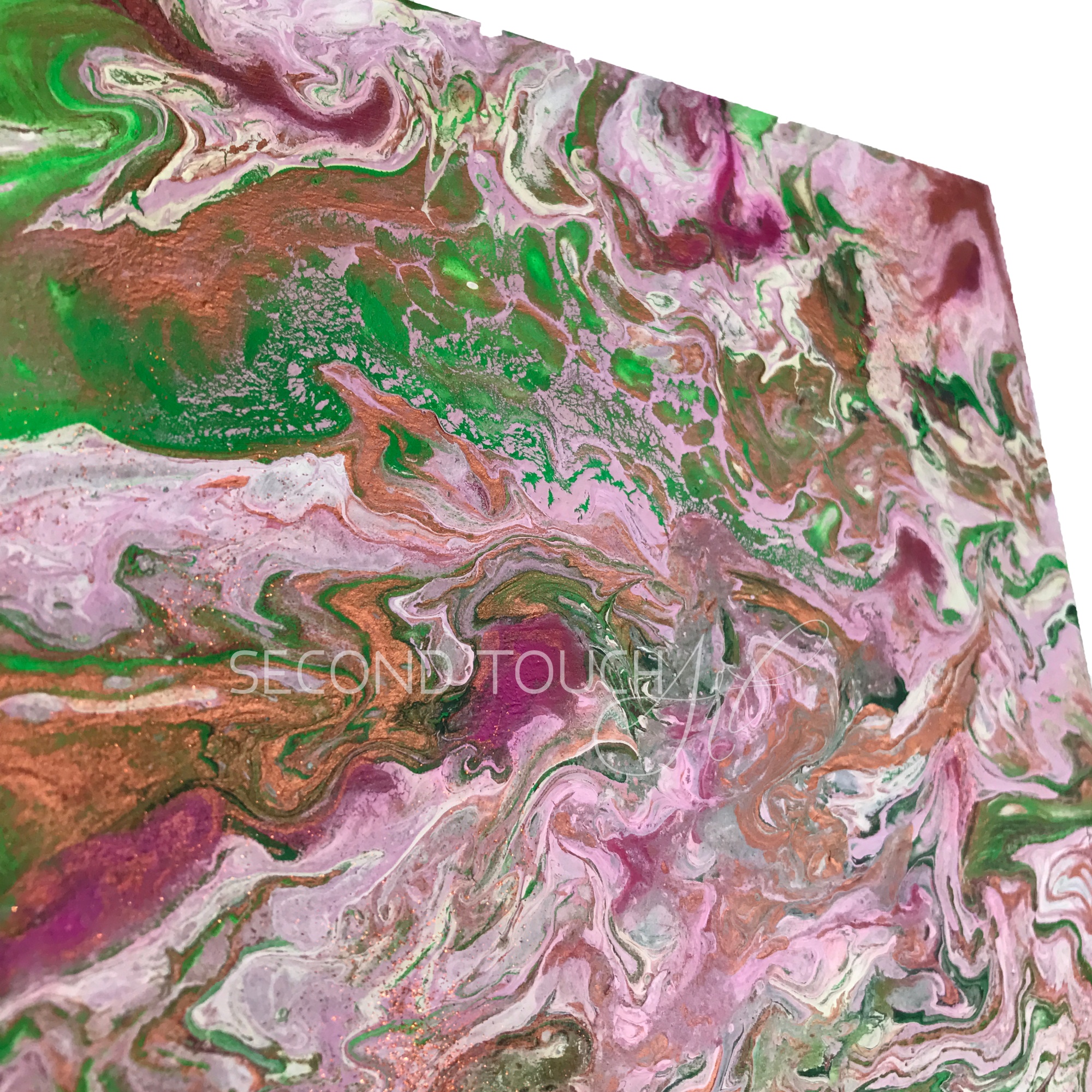 This piece is 12" x 12" x 1.5" and is painted on a cradled birch wood canvas.