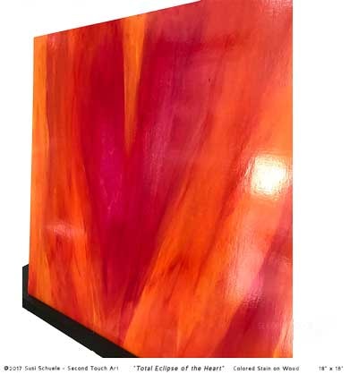 Created in a 3 color challenge of orange, pink and yellow, this piece was created with the August 21, 2017 total solar eclipse across North America at its focus. The abstract heart surrounded by halos of bright light was the vision that I felt would encompass not only the song title, but the historic and unbelievably gorgeous actual eclipse.