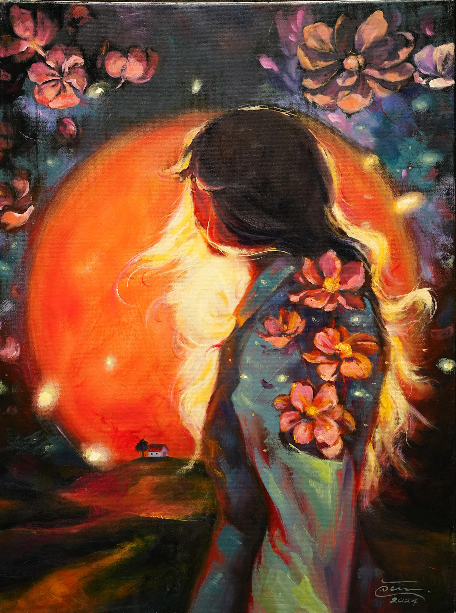 MessageSomeone who carries her dreams far from home, wrapped in the blossoms of hope and the glow of a distant memory.