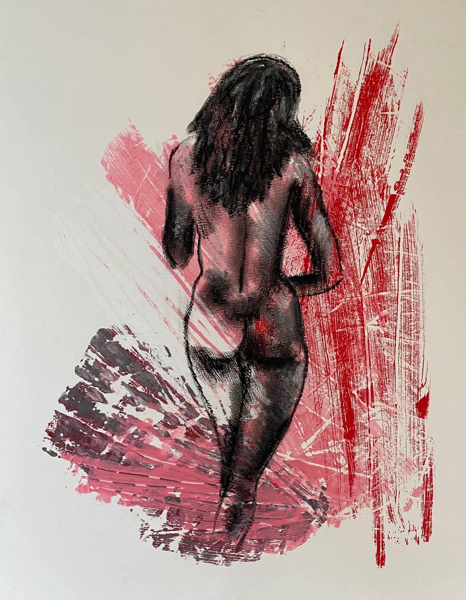 MessageMonotype background with nude female in charcoal