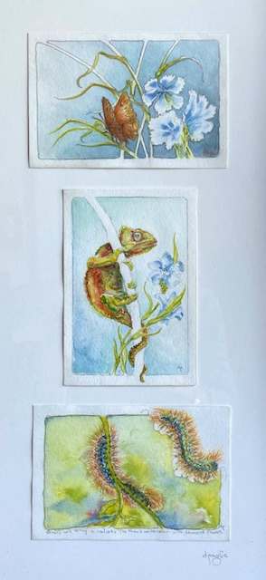 MessageTriptych on 4x6-inch paper panels mounted in 21x11-inch frame