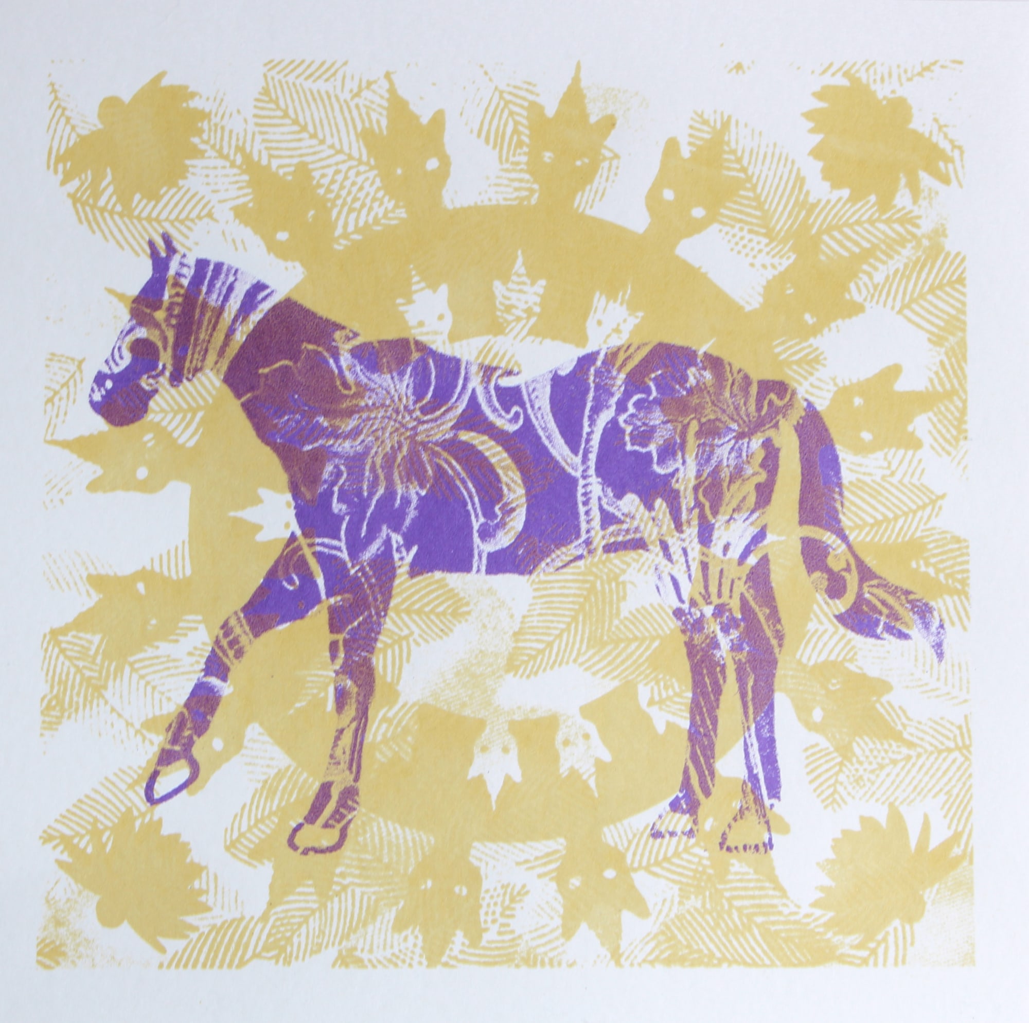 Message‘Dala’ is my interpretation of a Dala Horse or Dalecarlian Horse. A Dala Horse (Dalahästº) is a traditional carved, painted wooden statue of a horse originating in the Swedish province of Dalarna. In the old days, the Dalecarlian horse was mostly used as a toy for children; in modern times it has become a symbol of Dalarna, as well as of Sweden in general. The Dalecarlian horse became the national toy in 1716. According to legend, soldiers loyal to King Charles XII were quartered in the Dalecarlian region and carved the toys as gifts for their hosts. Dala Horses are popular symbols for good luck. In the background of the horse is a Buddha Cat Mandala, my own personal good luck charm. These two powerful symbols combined represent the gifts, blessings and good fortune that a child brings.