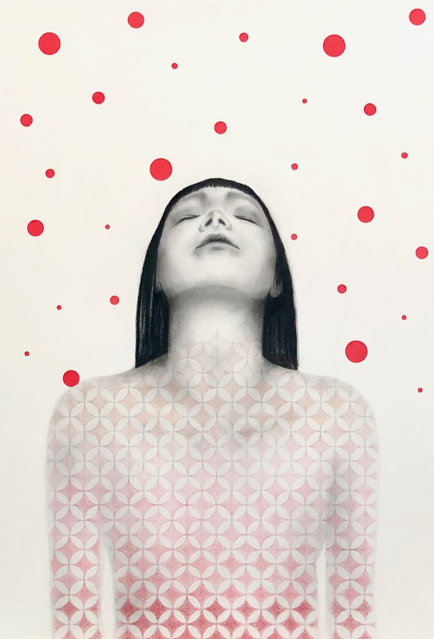- Charcoal, color pencil, washi tape on paper