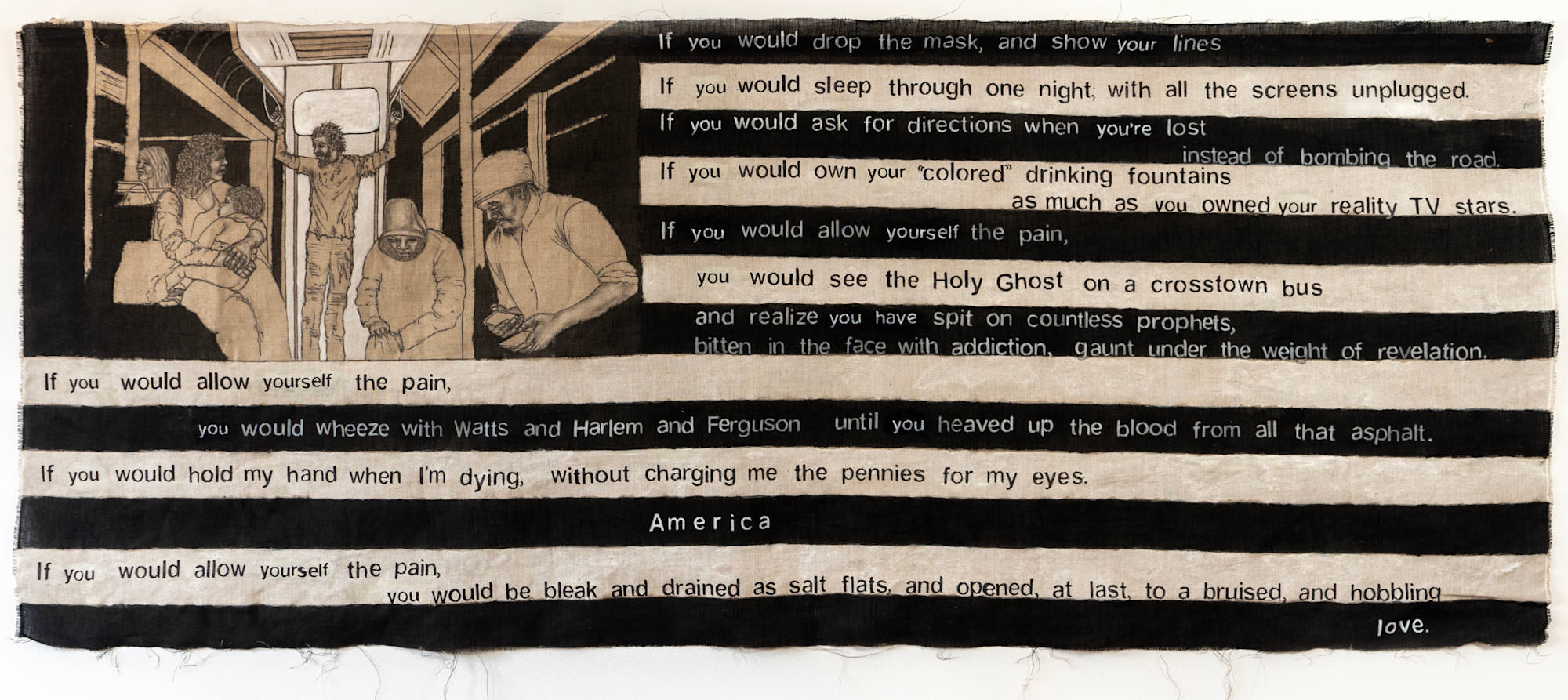 - Acrylic, Charcoal, marker on raw linen
