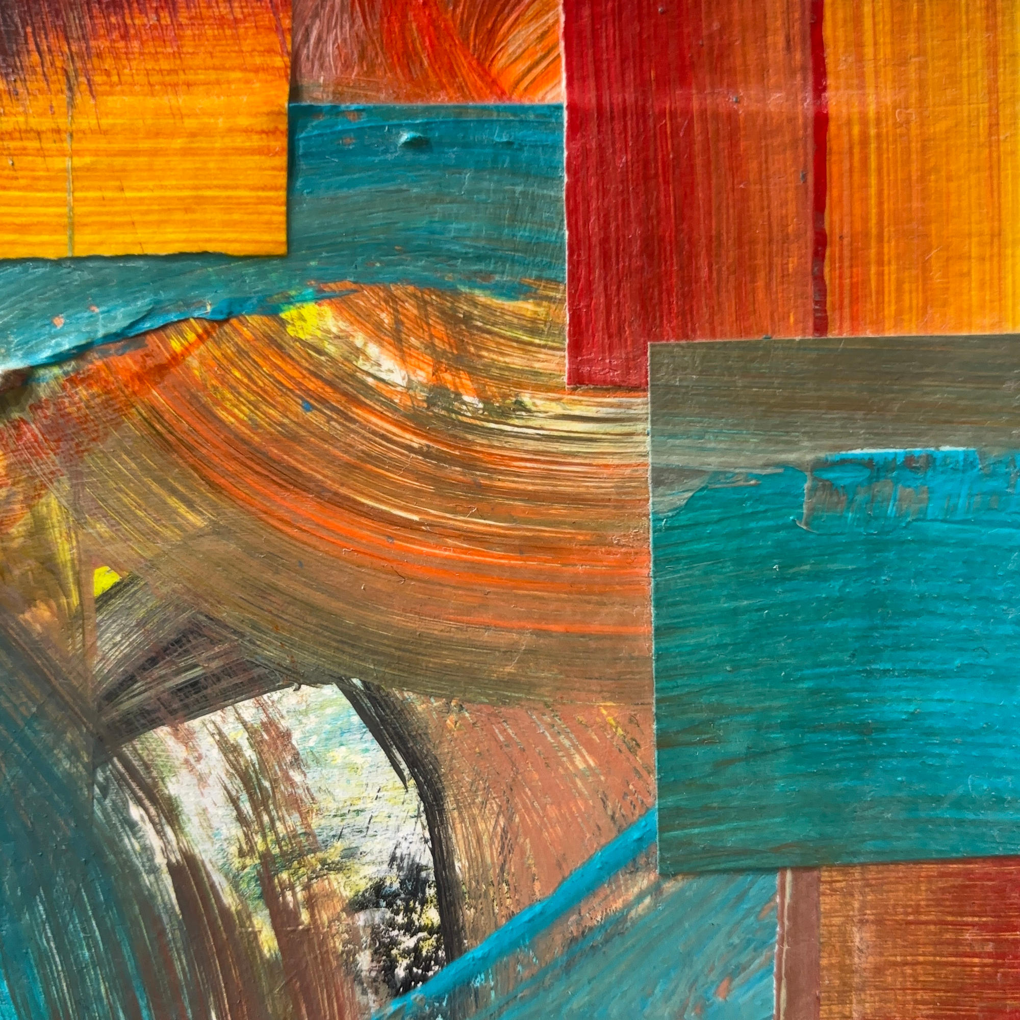 MessageIn 'Loose Threads', fragments of painted paper are pieced together on birch panel, creating a surface alive with shifting colour and texture. The title nods to the frayed edges of quilts, where beauty often lies in imperfection and in what remains unfinished. Like a patchwork, the composition weaves together old marks and new gestures, offering glimpses of past layers while pulling them into fresh conversation. The work celebrates the act of mending and remaking—finding harmony in what doesn’t quite align, and honouring the resilience of what holds together.
