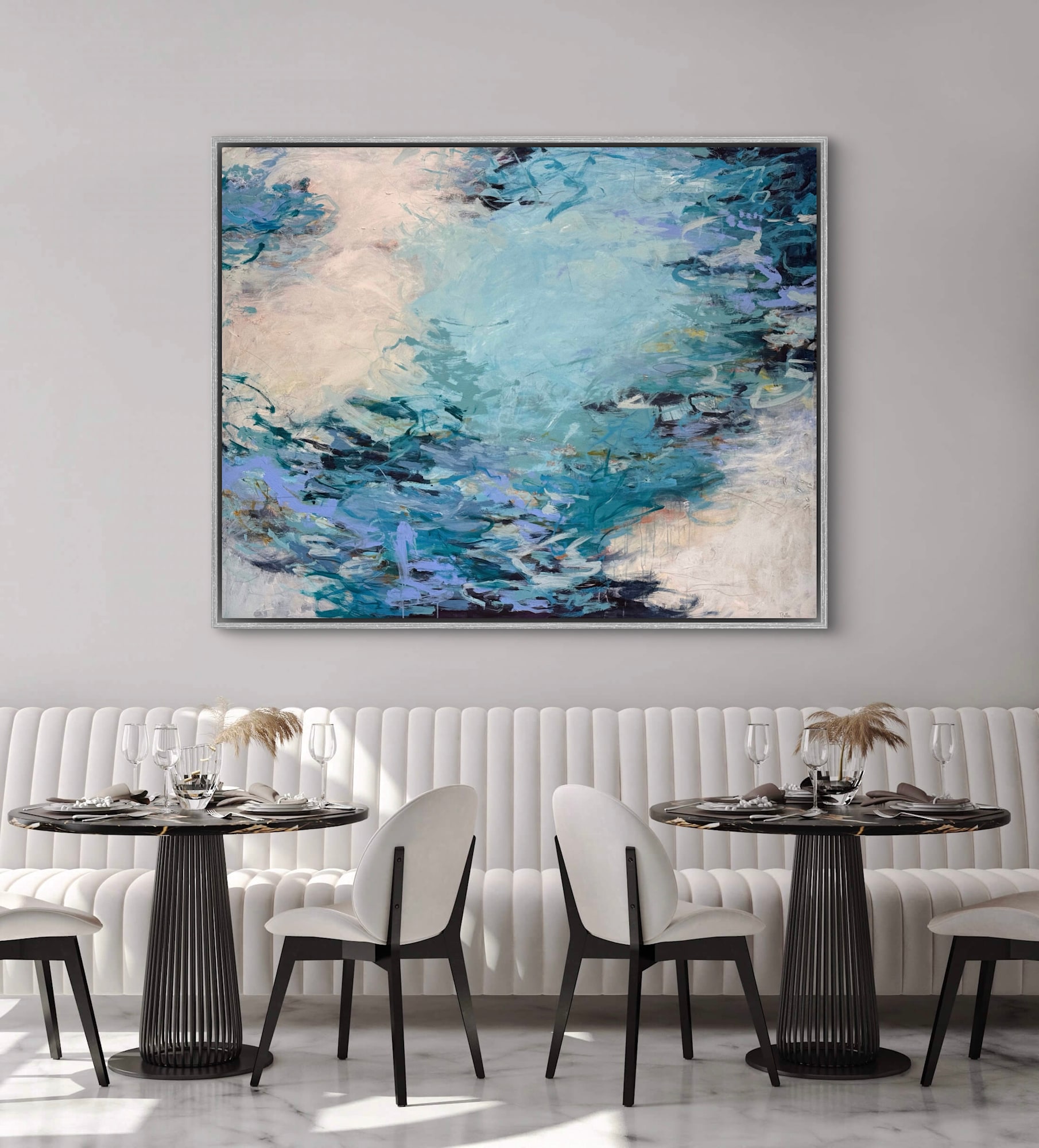 Framed with a custom silver/taupe floater frame