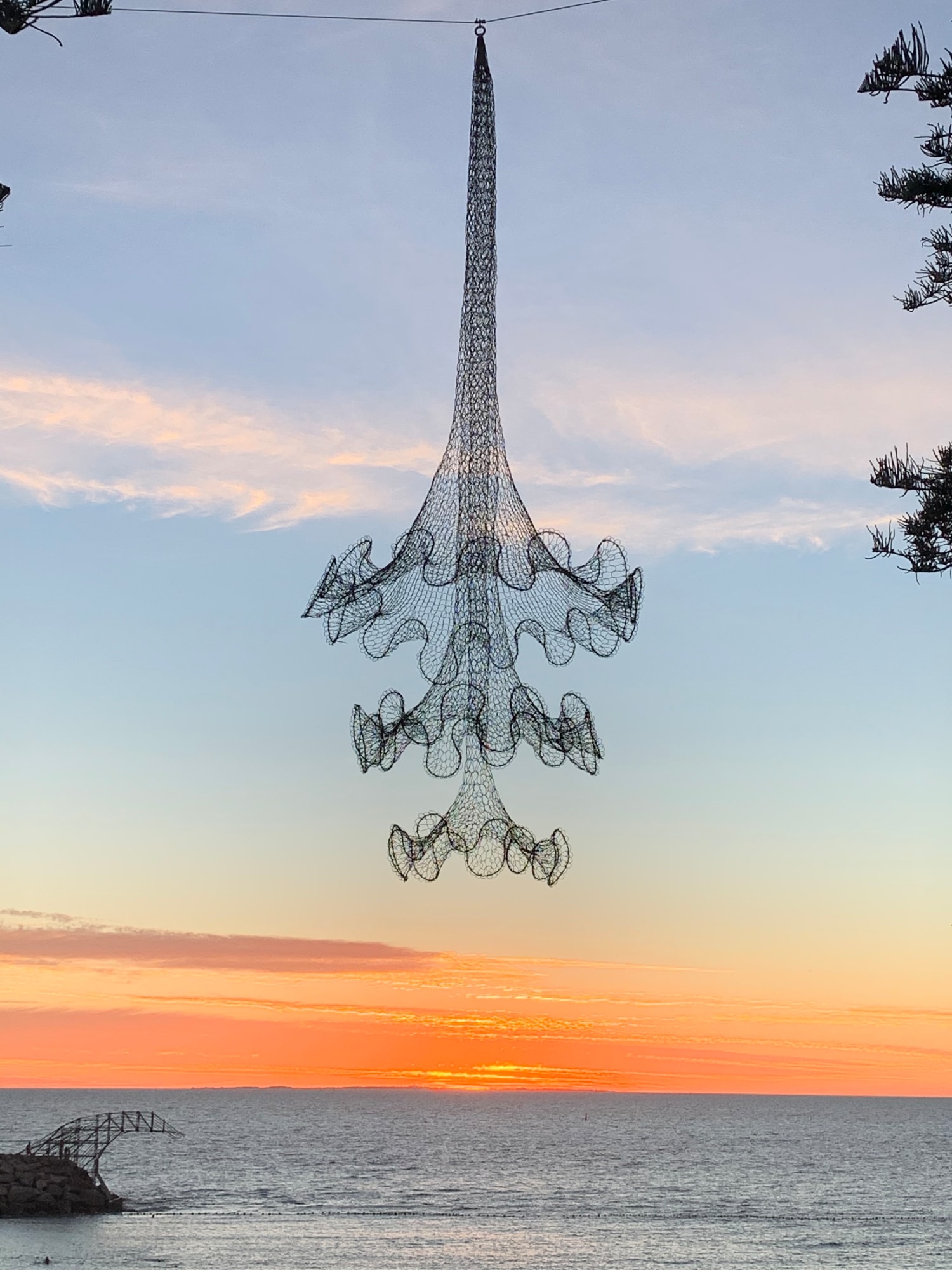 In this time of worldwide uncertainty we notice the return to a simpler life; family, nature and creativity contribute a rich sustenance for existence. I looked amongst the shell collection inherited from my Nanna and found a clamshell. I’ve created a form inspired by the fluted edges of the clam to hover over and protect you.