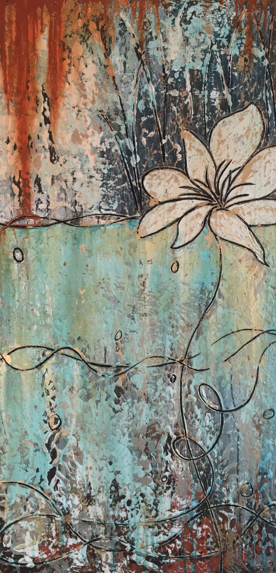 In my paintings I use a unique layering of mediums to capture the relationship between the ever changing organic matters in nature and our own unique layers of life we accumulate over time. The glimmer of sunlight on an aspen tree or the appearance of the lotus flower remind us to stop and contemplate our experience and intentions.