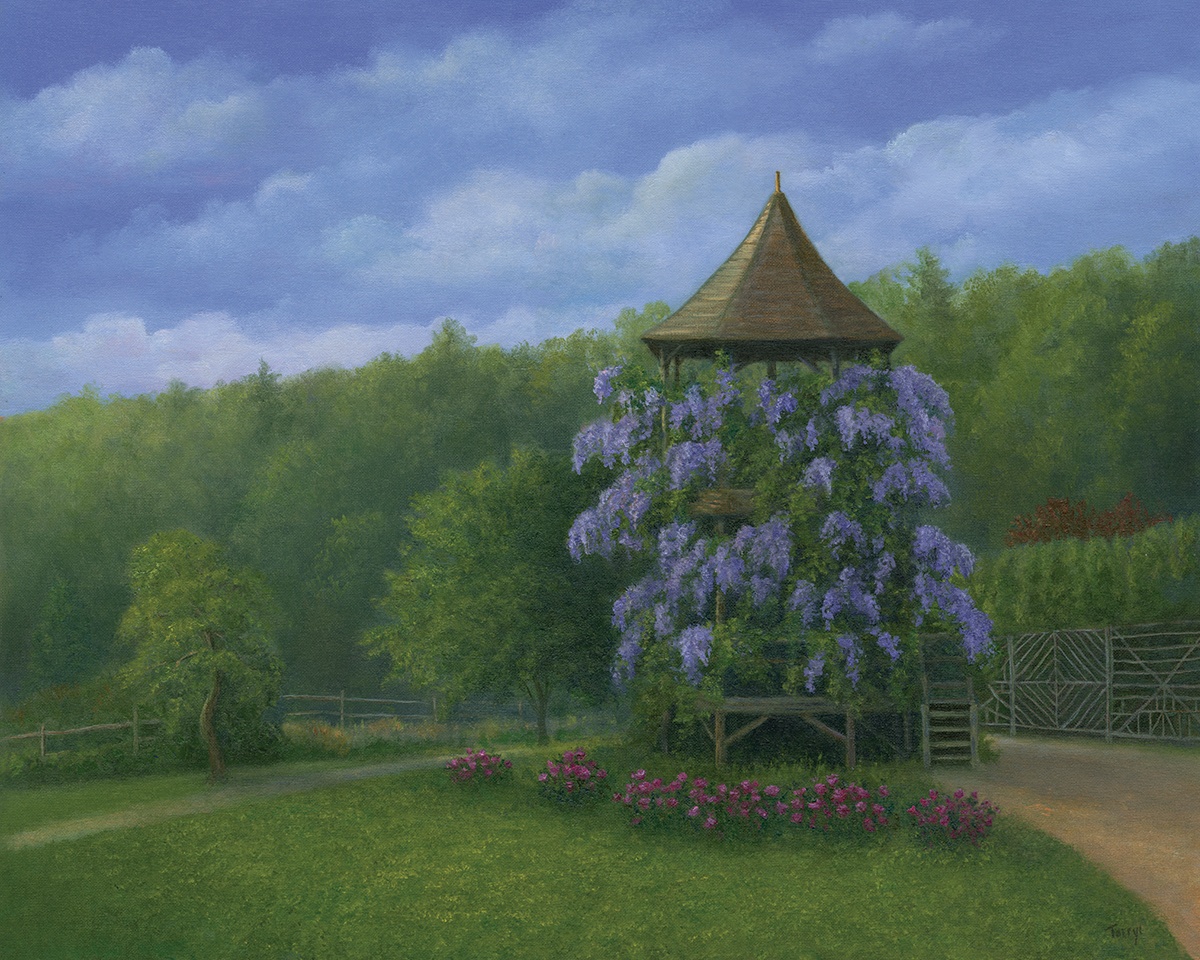 Wisteria in bloom, Summerhouse Mohonk Garden