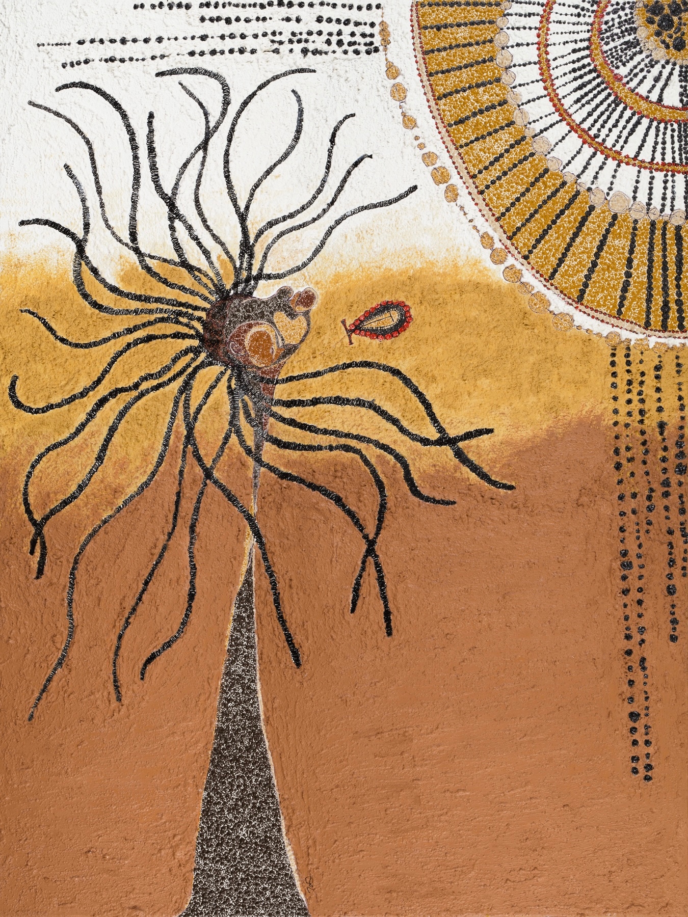 "The Salt is Sweeter than the Sugar is Salty" is a figurative painting on the exploration of spiritual journeys and the imperative need for Black Diasporans to reestablish their ancestral bonds. This piece symbolizes the necessity of consistent, time-honored efforts to reconnect with one's heritage, akin to seasoning every meal with salt until it's depleted. Just as salt is integral to our bodies and tears, it serves as a healing agent for ancestral wounds, fostering a connection with our roots and with others who share this vital journey.