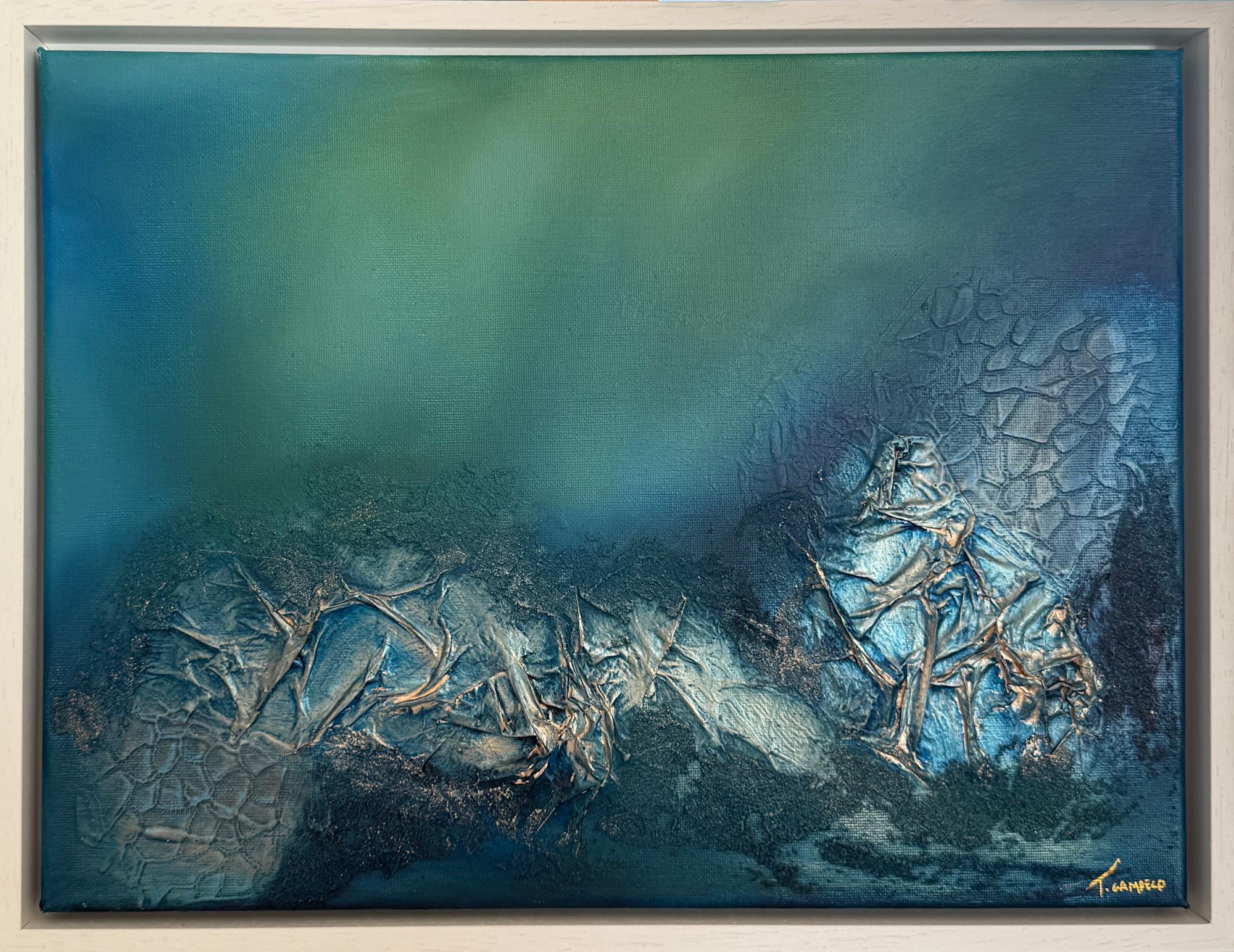 A captivating composition that marries the timeless elegance of gold with the tranquil depths of blue. The interplay of these enchanting tones evokes a sense of otherworldly beauty, offering a visual journey into the transcendent essence of this piece