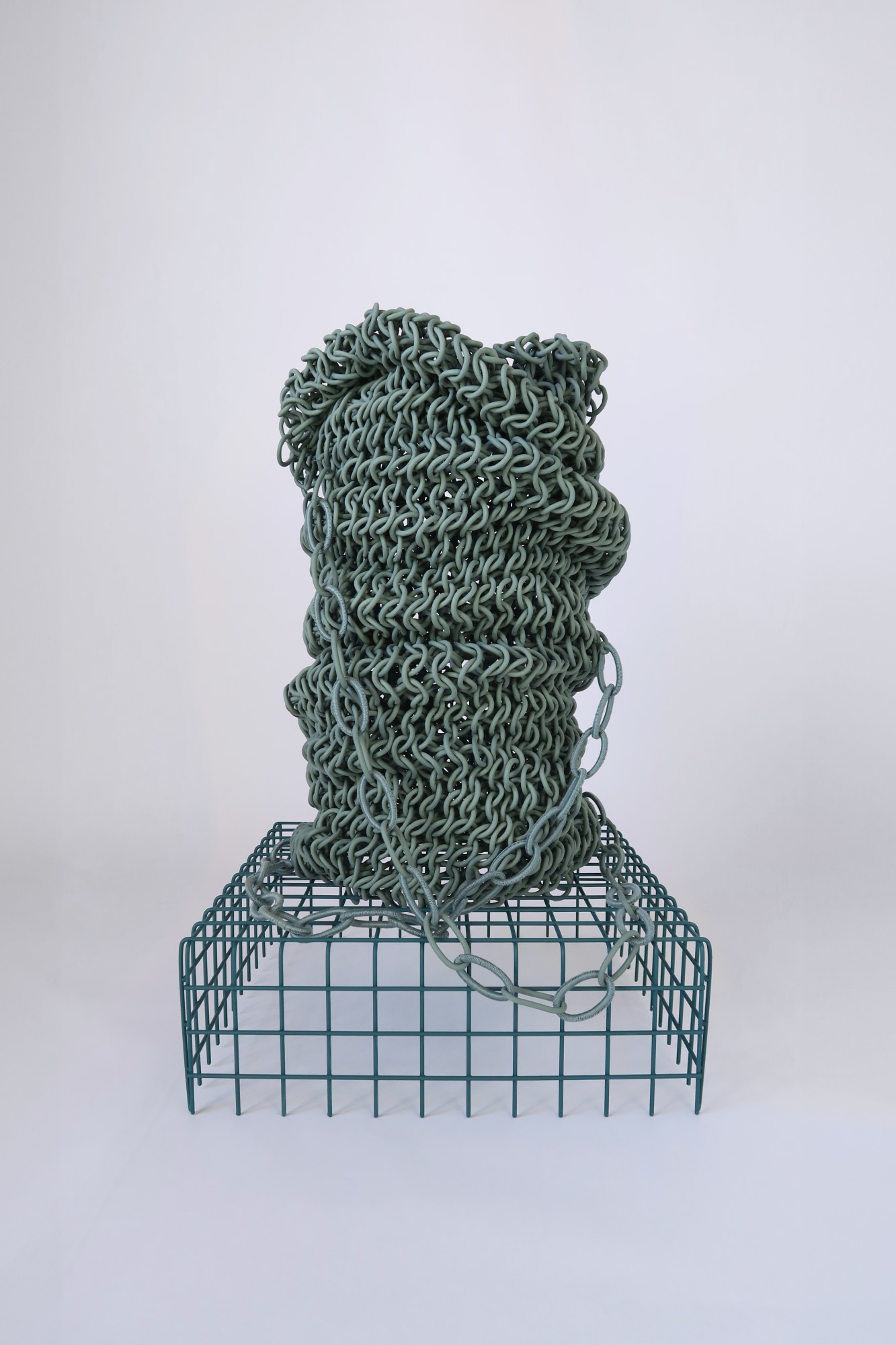 Colored Stoneware, Embroidery Thread, Steel Mesh, Spray Paint