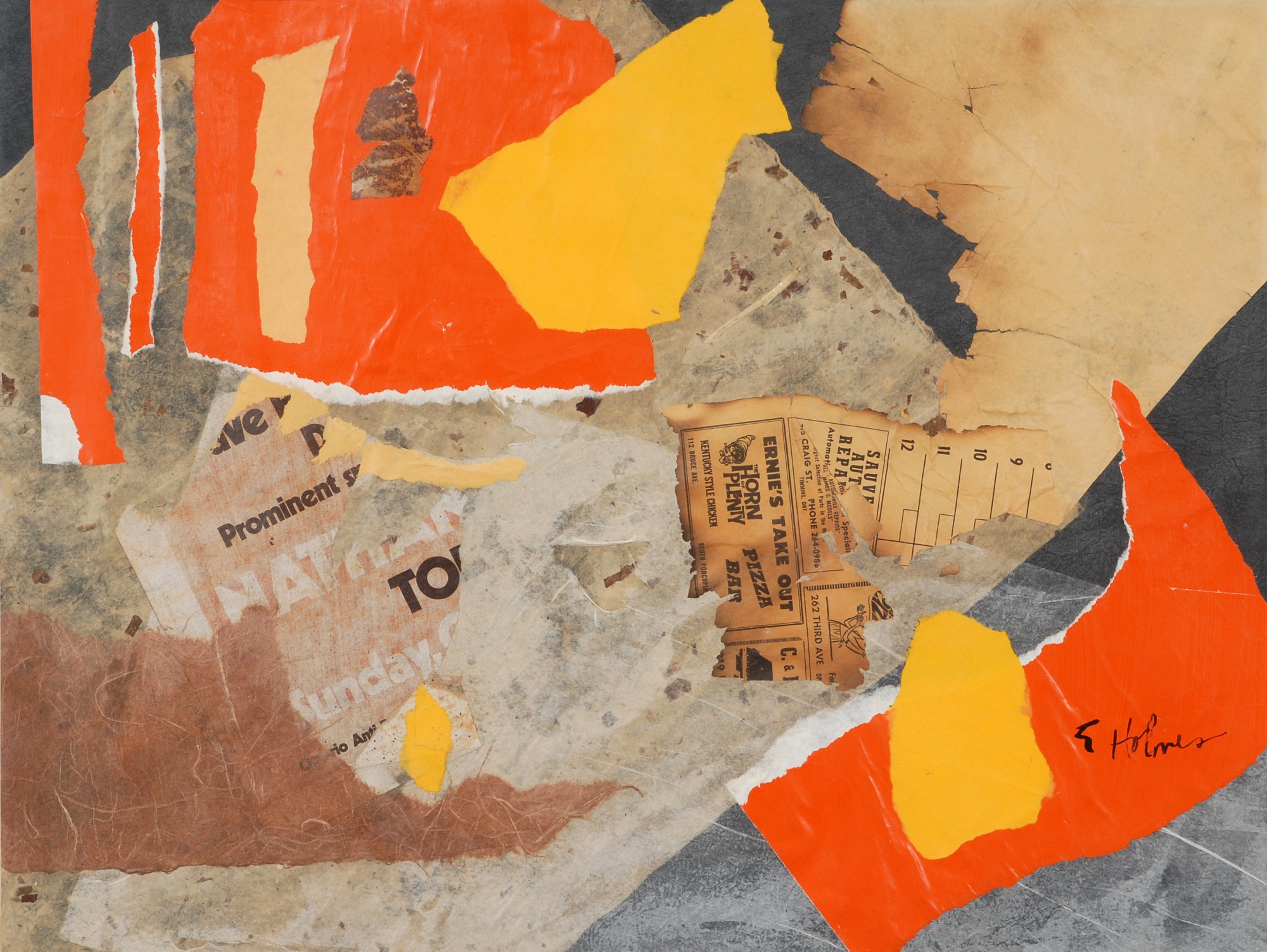Collage by Elizabeth Holmes  Image: I like working abstractly in collage with a variety of papers and textures, found and purchased. I like the flat shallow space, overlapping.