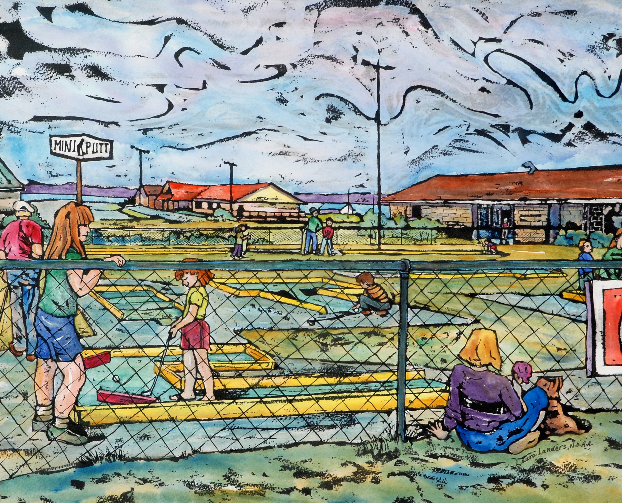 This is a watercolour on ink resist. It was completed as part of a series of paintings entitled ‘Slices of Temiskaming’. This exhibition of paintings then toured many galleries throughout northern Ontario in 1993. The series has continued to grow with more scenes of the area added. There is also an unlimited edition of prints.