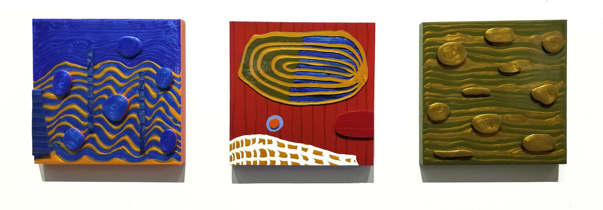 An abstract meditation on radiance and the tranquility of water. From the "Sensation" series which explores sounds, movement and emotions of experience. Dimensional and poured acrylic on cradled panel. 8” x 8” x .75”. Wired and ready to hang.
