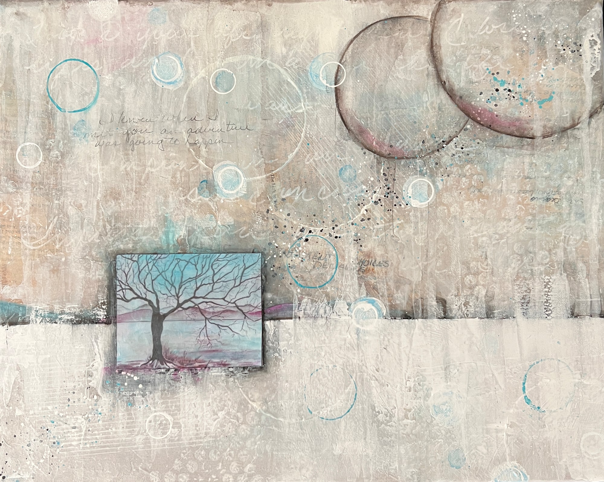 One of a series of three. Finishing up these pieces, photographing and journaling about them, George Winston's December came to mind. Thus providing me with titles for the pieces.