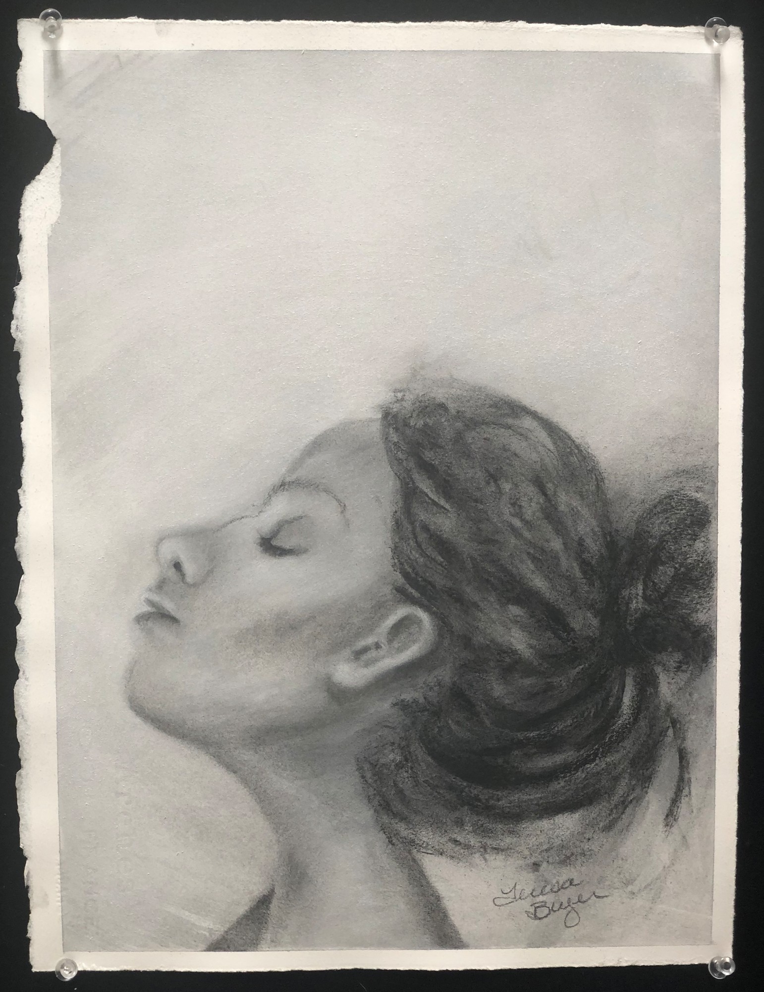 And then doing a couple of layers with gesso and then wet draw with a brush with charcoal and water. Yeah, painting with that and then smearing and doing it again. It was a lot of fun. I lost the proportions darn it! And she is way too dark. She was meant to be done ever so lightly and gently.