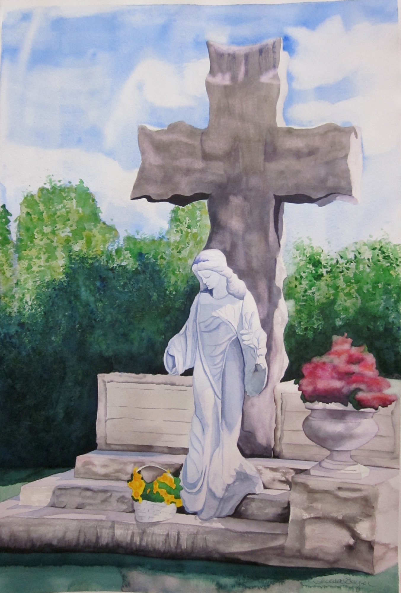 The Bride - a life size grave marker. The Bride on her wedding day tripped on the stairs to her death.
