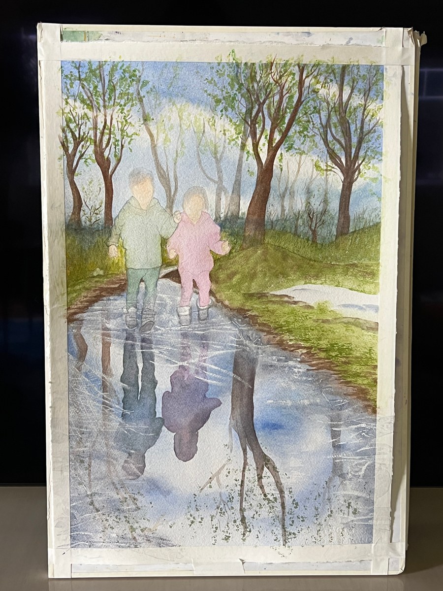 And what is that to the left of the boy? A bunny butt? A bunny scampering away, yes, I believe it is.