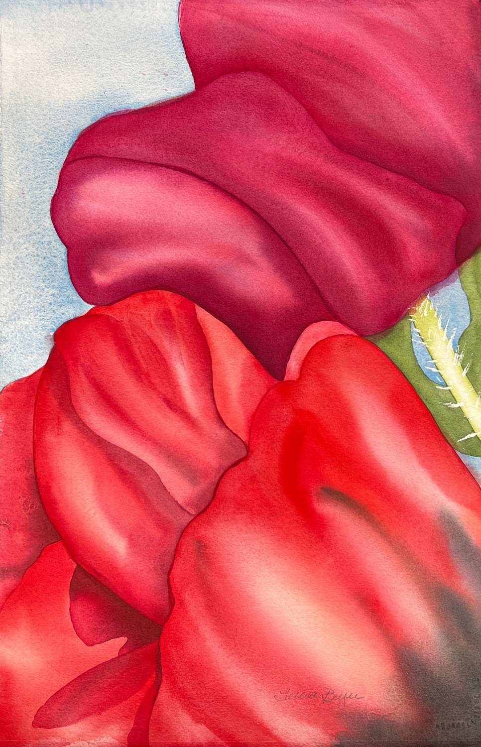 The Power of Red, Poppies in watercolor on paper, done in an online workshop with Birgit O'Connor