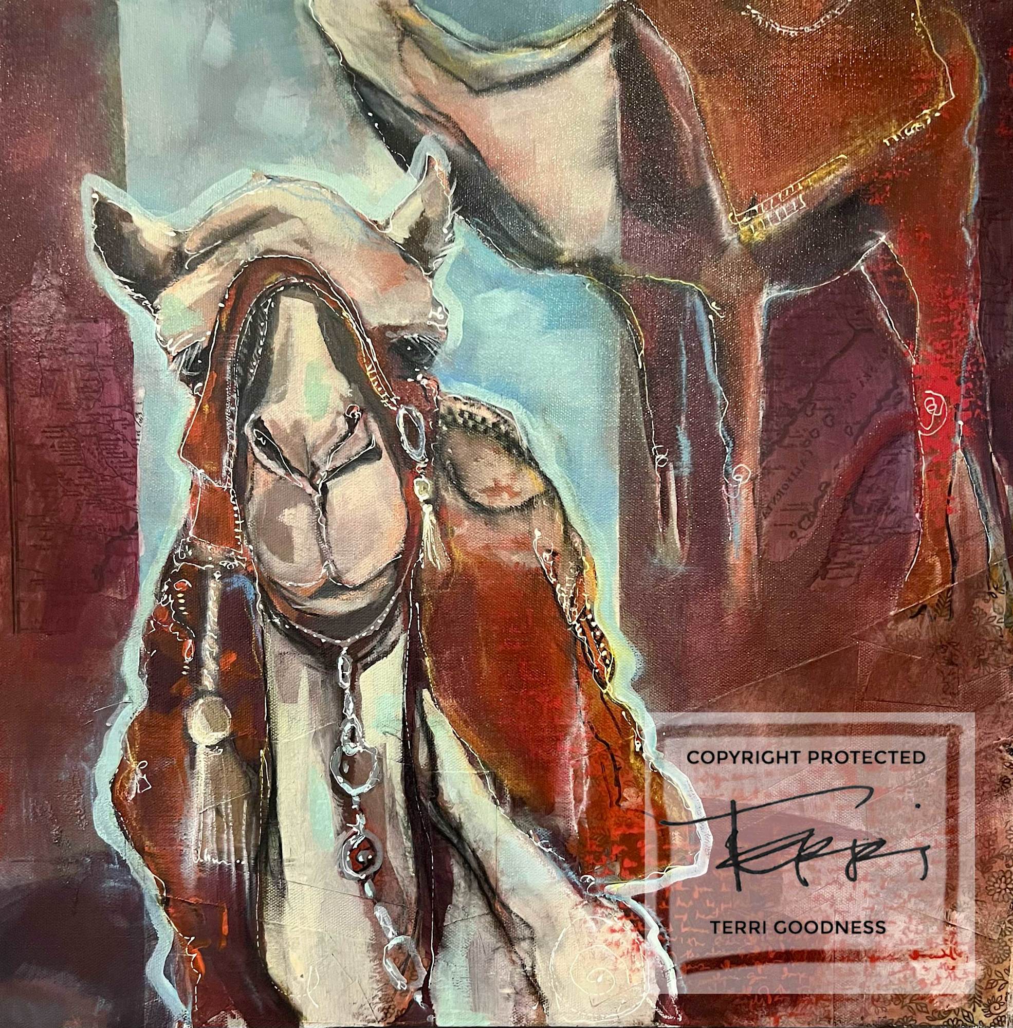 "Travelers of Petra" depicts camels as companions in harsh landscapes, symbols of resilience and ancient partnership.
