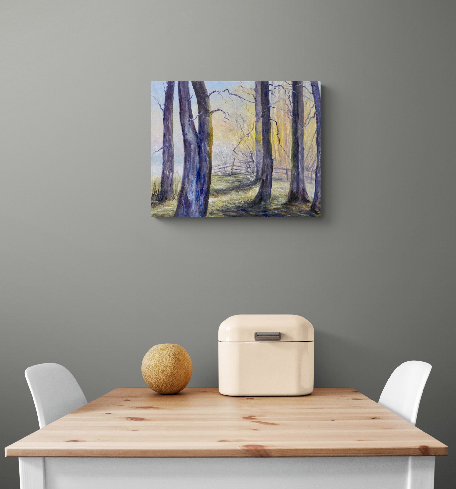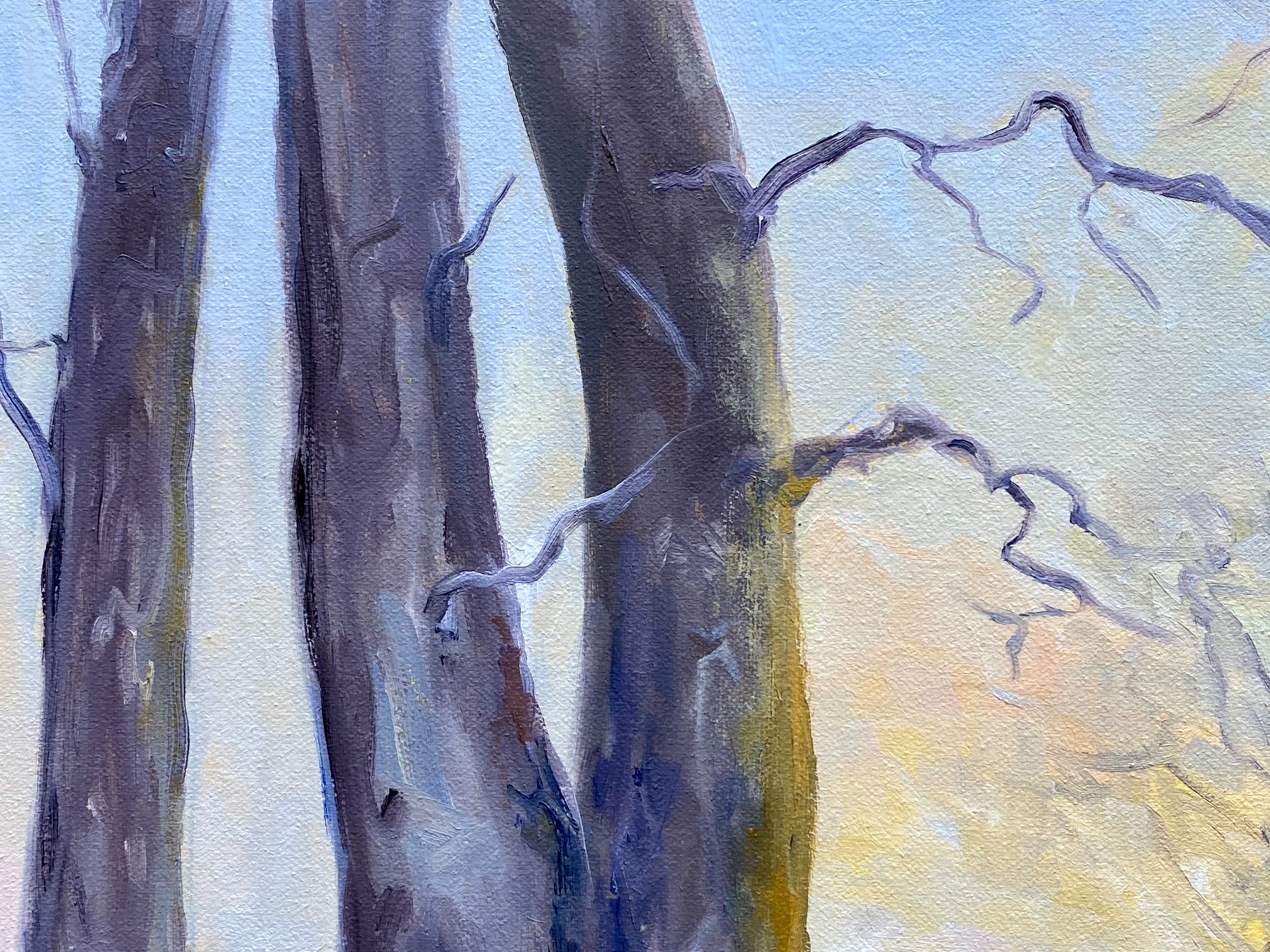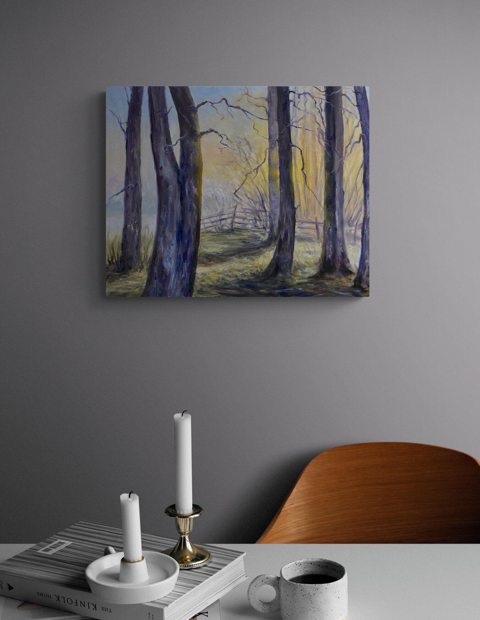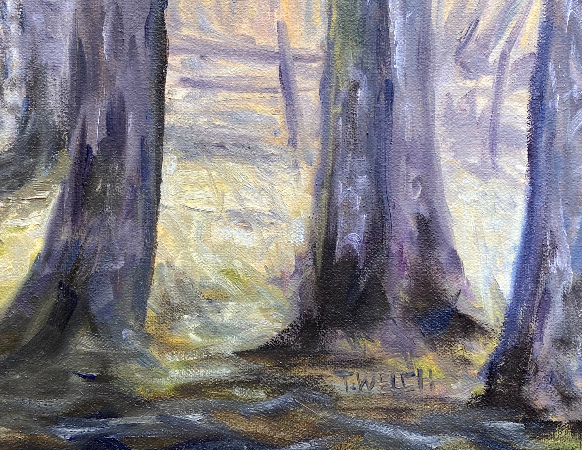 Artist notes: The early morning mist filtering sunlight through the willows, poplars and cotton woods beside the Stuart River is a magical time of day and filled with years of memories.