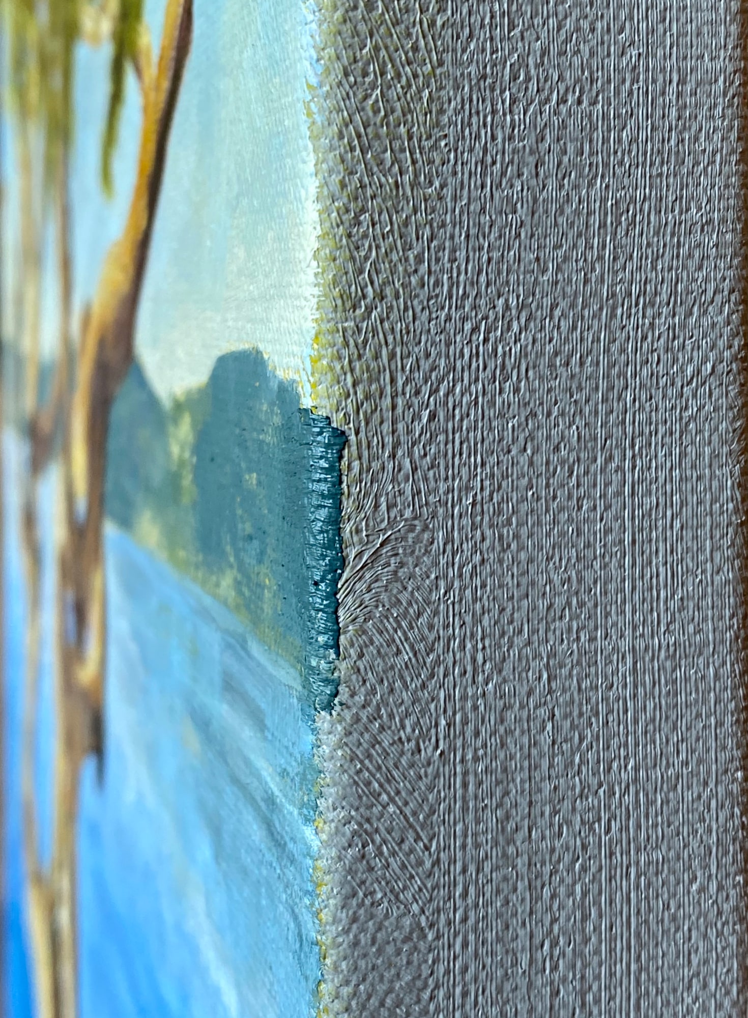 Artist notes: It is morning in the painting and the winter sun has just come around on the left. Navy Channel is calm and the low warm light feels like it will hang draped over the Arbutus tree for eternity. Maybe we shall stay right here for a while.
