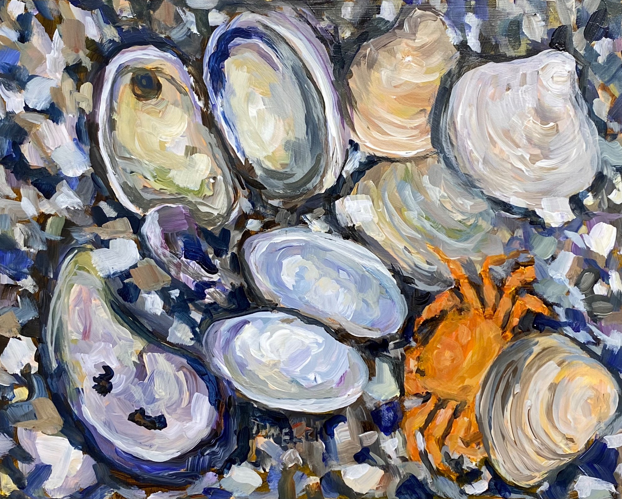 Artist notes: The notes of the day are darker and richer as the tide recedes from the shells and leaves a small orange crab scrambling for cover.