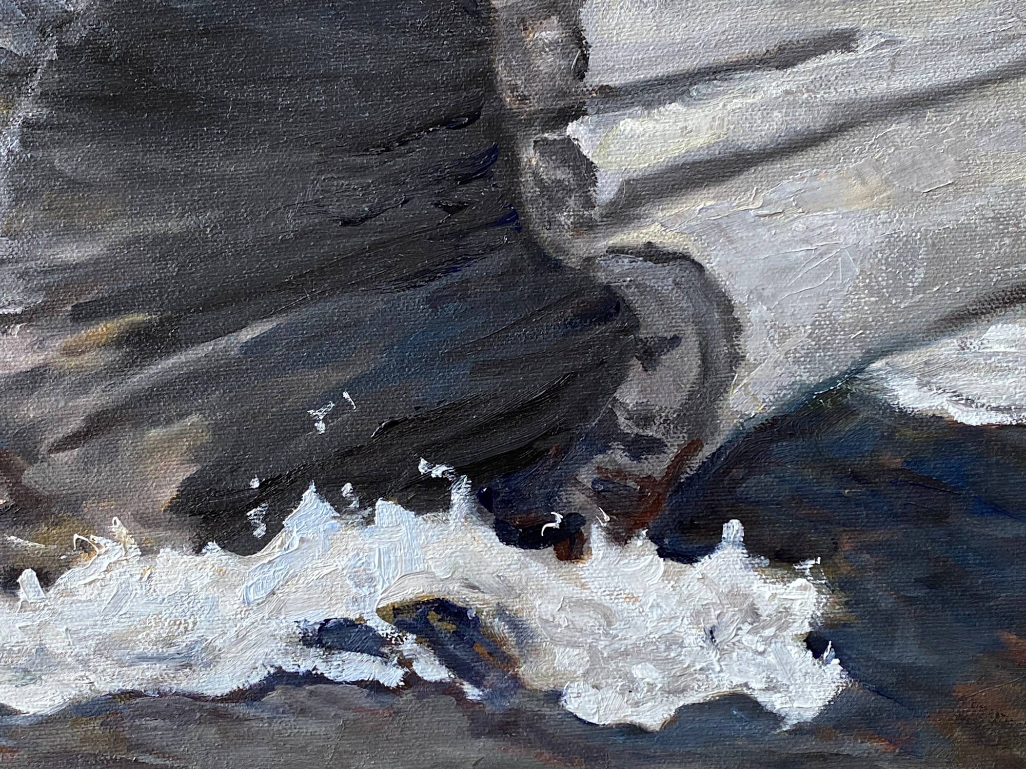 This painting beautifully evokes a sense of calmness and natural beauty, inviting viewers to lose themselves in its tranquil setting. The added backstory of the driftwood log during a time when many sought solace in nature's quiet corners, adds an emotional layer to the artwork. This piece is both a visual and emotional testament to the simple, profound moments of peace found along the coast.