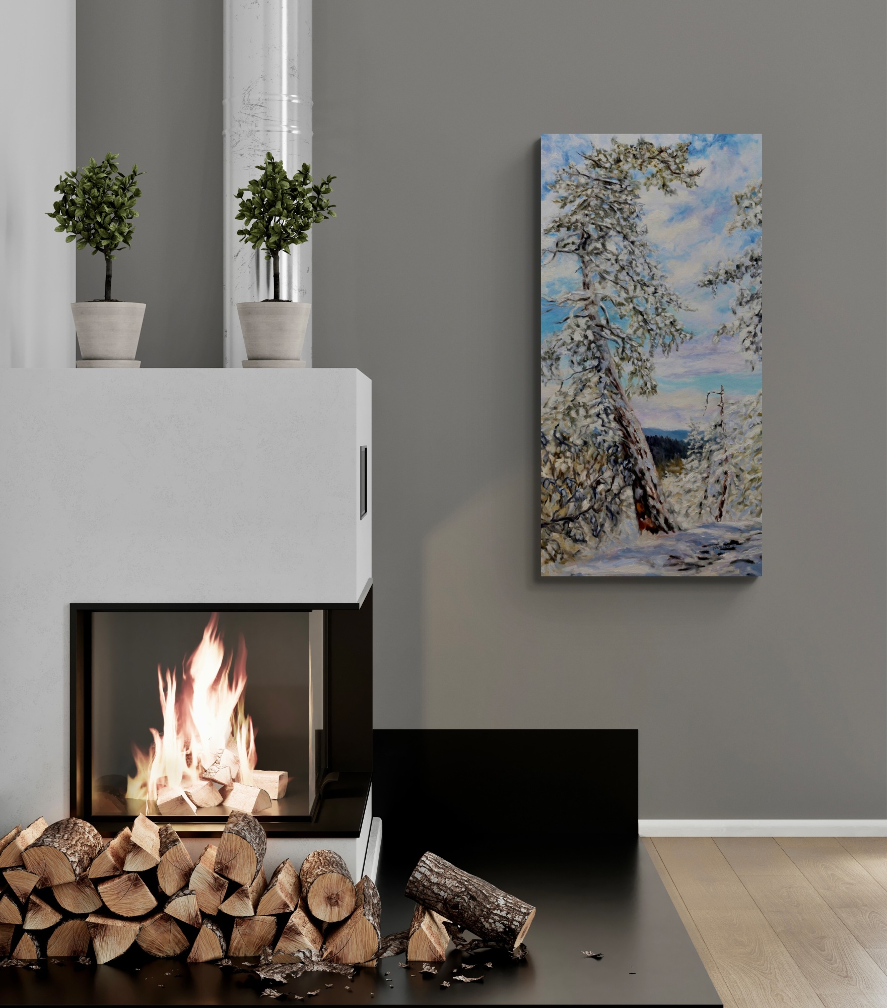 Artist notes: The snow on the north side of ridge slows my progress because I need to take several stops to catch my breath. But the climb was worth it! I have the Mt. Parke ridge with its fresh snow all to myself! Just me and this big old fir tree were there when the sun broke through the rushing clouds and warmed our backs.
