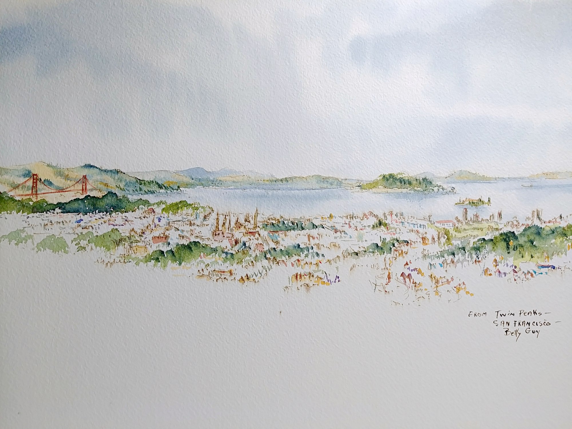 A view of the city, Golden Gate Bridge and the bay in the background.