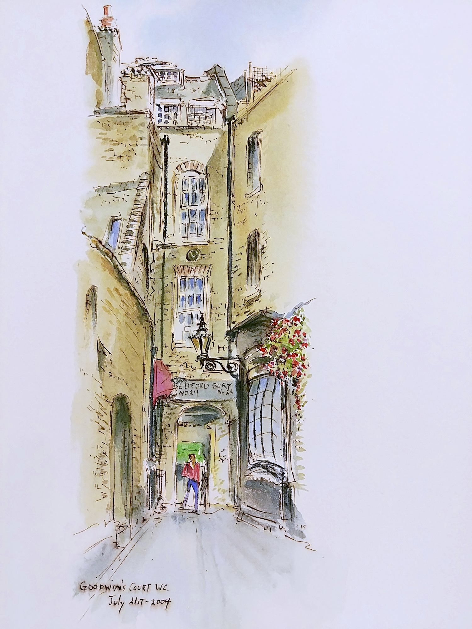 Alley way with a man standing in the doorway of the Bedford Bury.