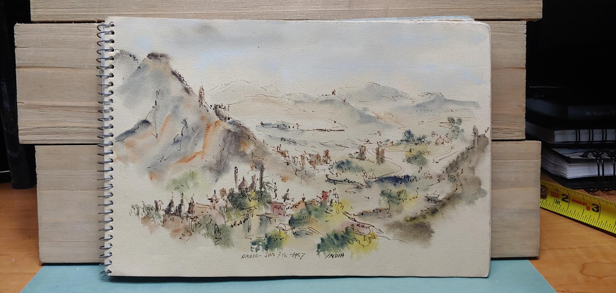 Journal contains 23 pages of art. Locations include Capri, Bombay, Delhi, Jaipur and more.