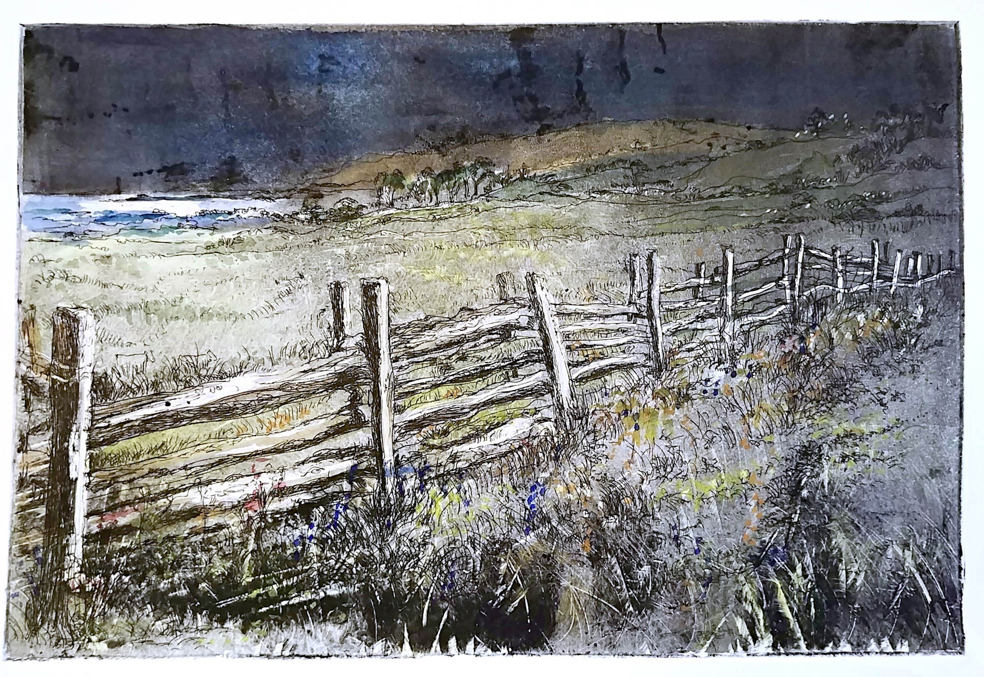 Wooden fence and landscape.