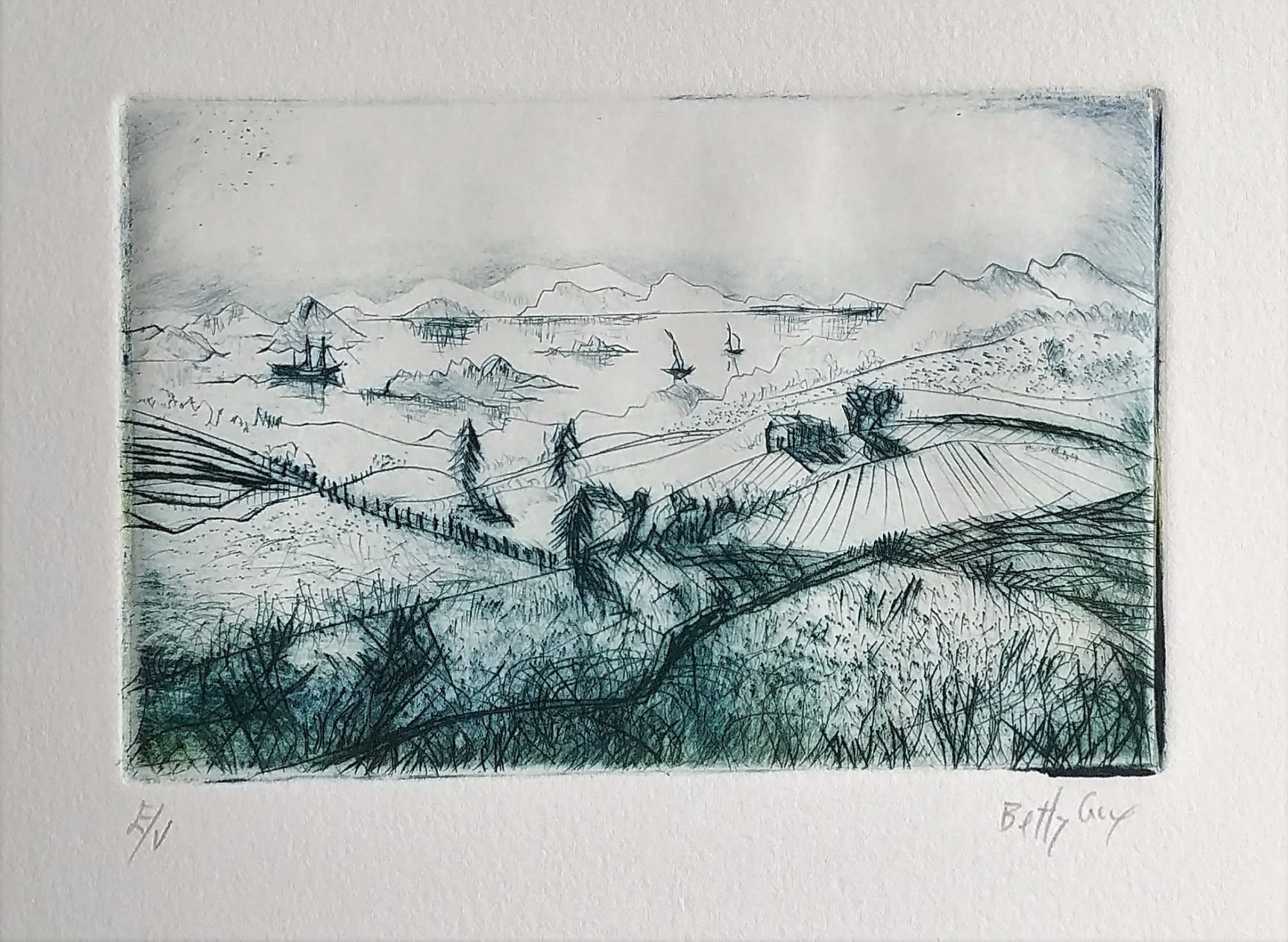 Drypoint etching, from the series of etchings "New Zealand" and "Bay of Islands-New Zealand"