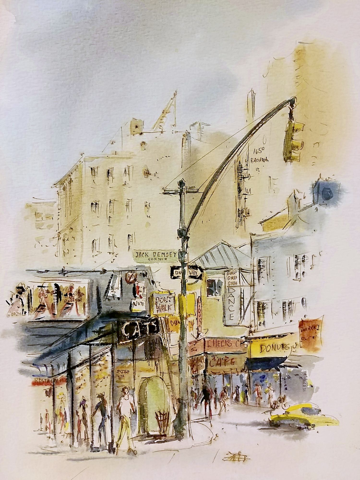 Jack Demsey Corner at Broadway. Jack Demsey's was a restaurant, opened in 1935-closed in 1974. In New York City.