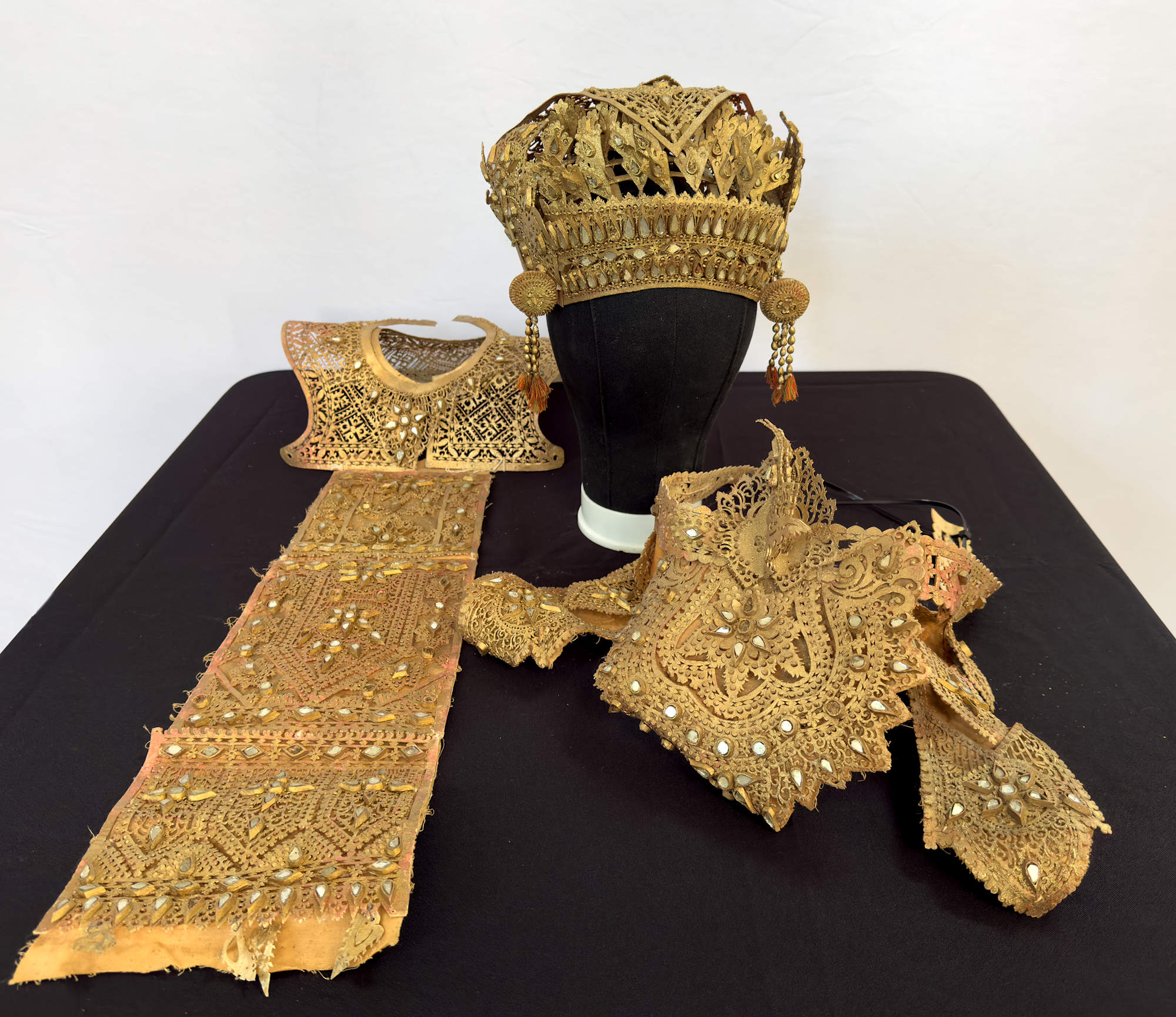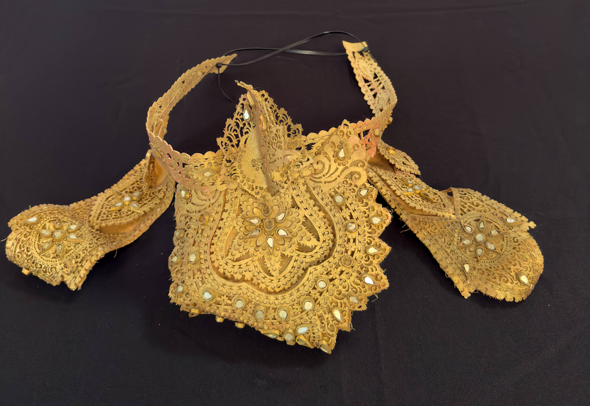 Gold waist belt with small mirror like gem stones.