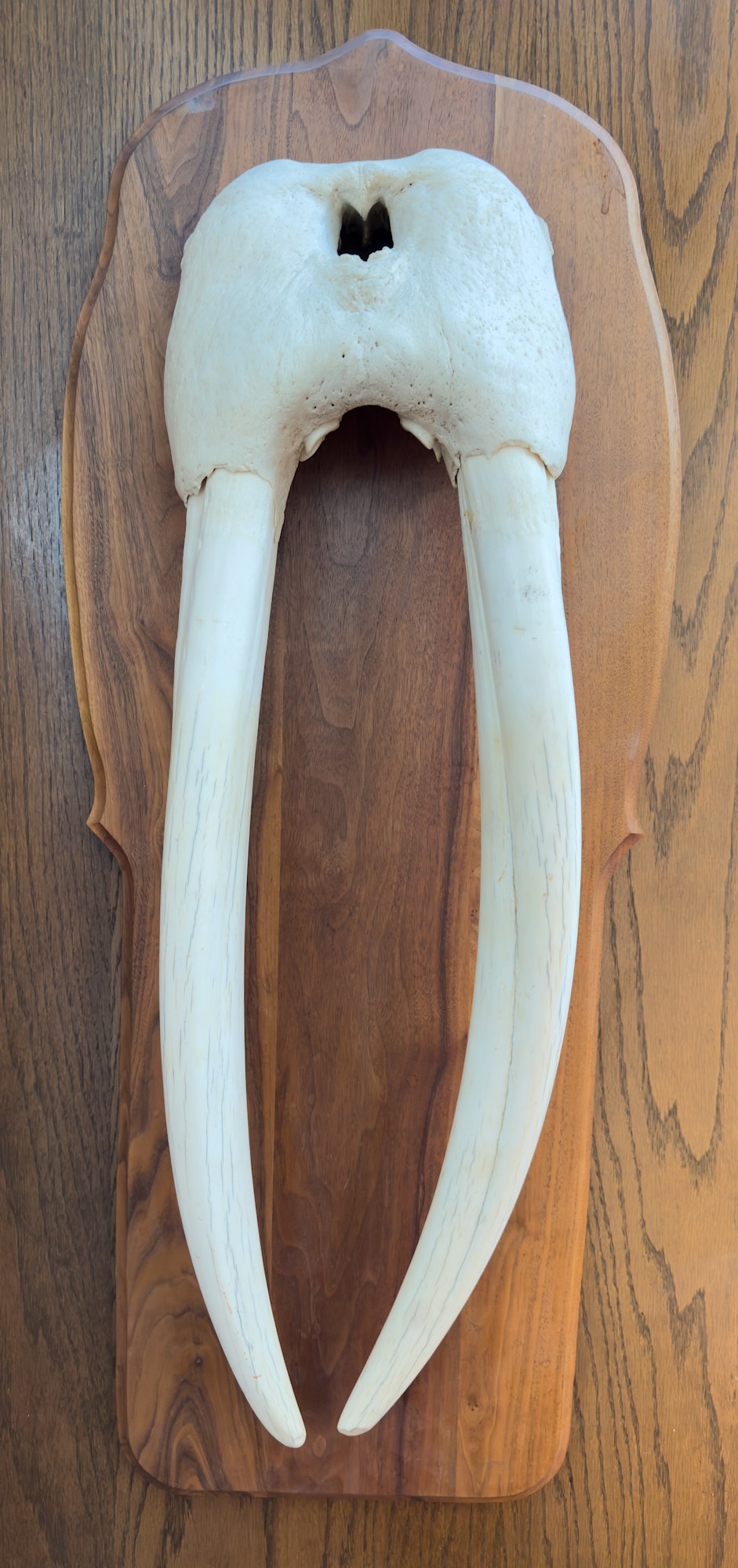 Full walrus tusk mounted on wood