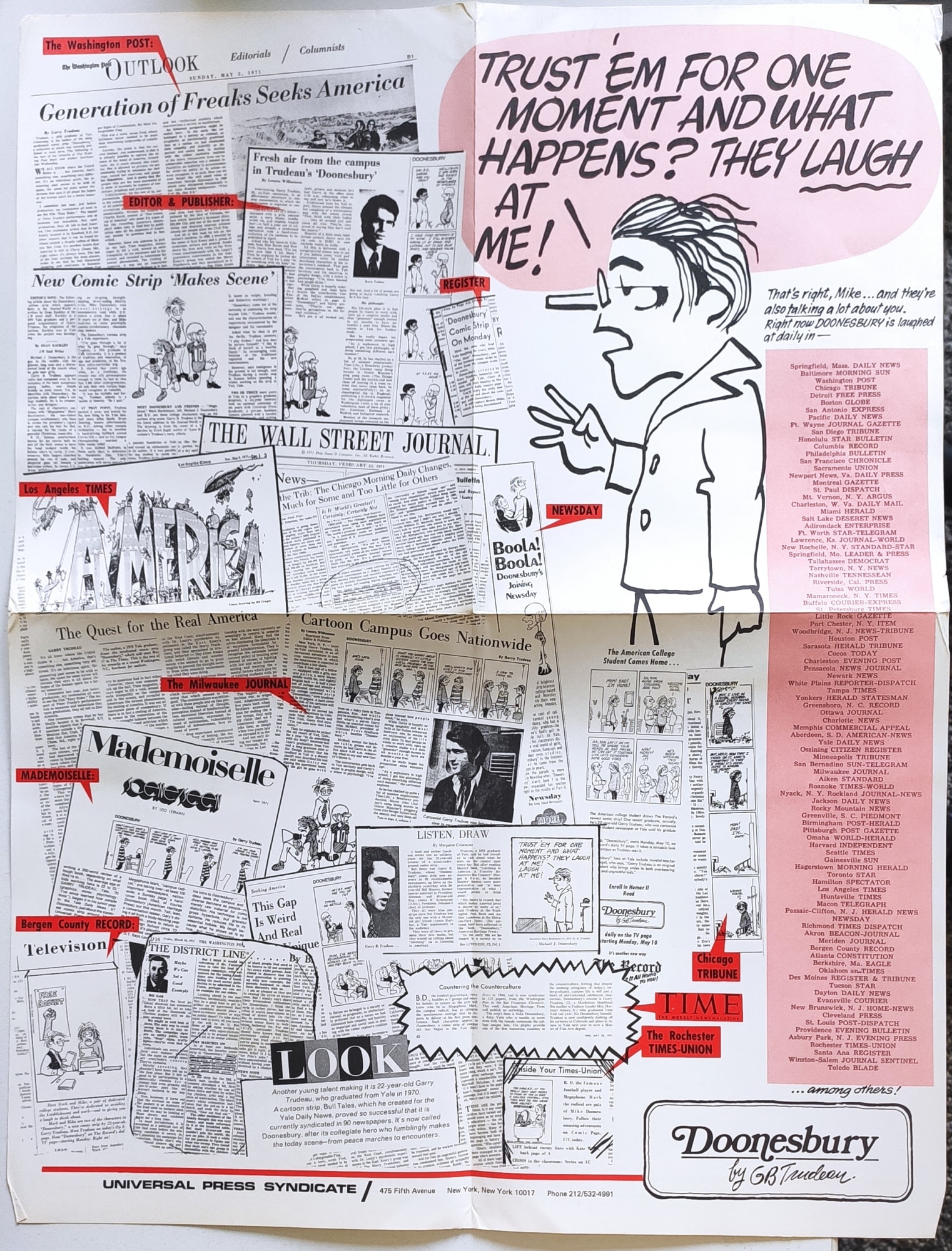 Doonesbury Universal Press Syndicate poster by Garry Trudeau  Image: "Trust 'em for one moment and what happens? They Laugh at me!"