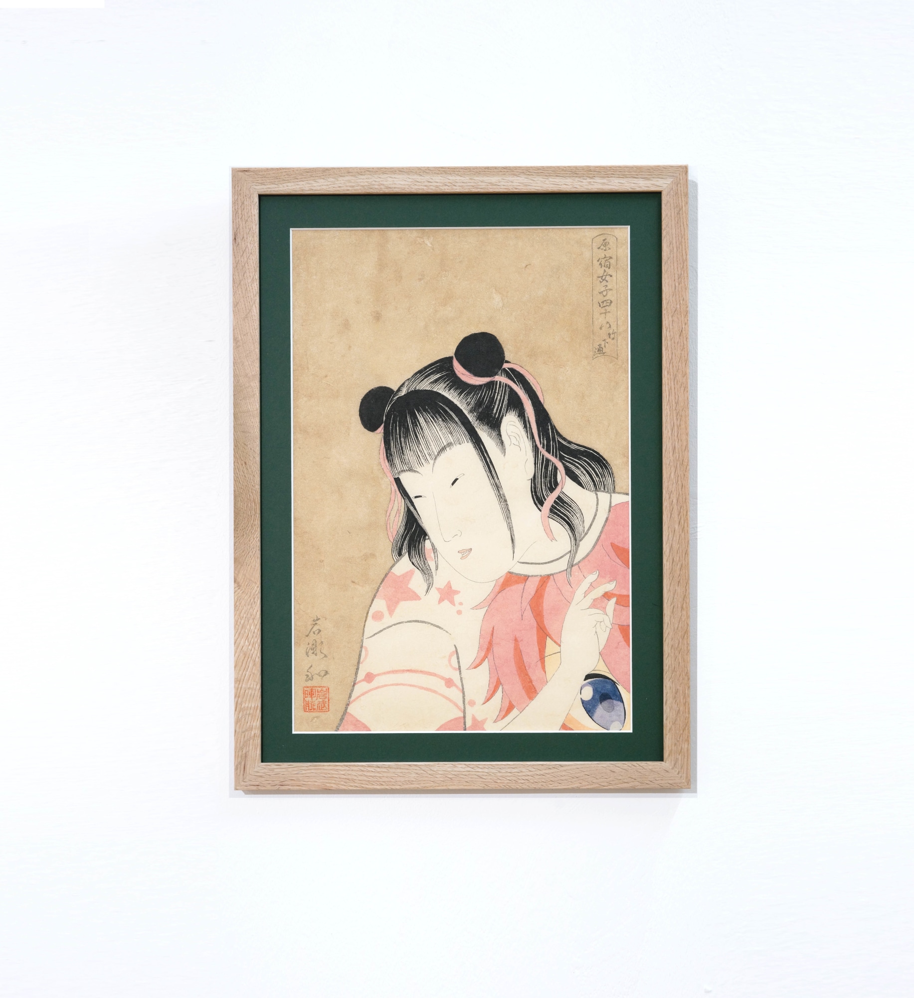 Suihi paint (dyed mud), Sumi ink on Mino-washi
