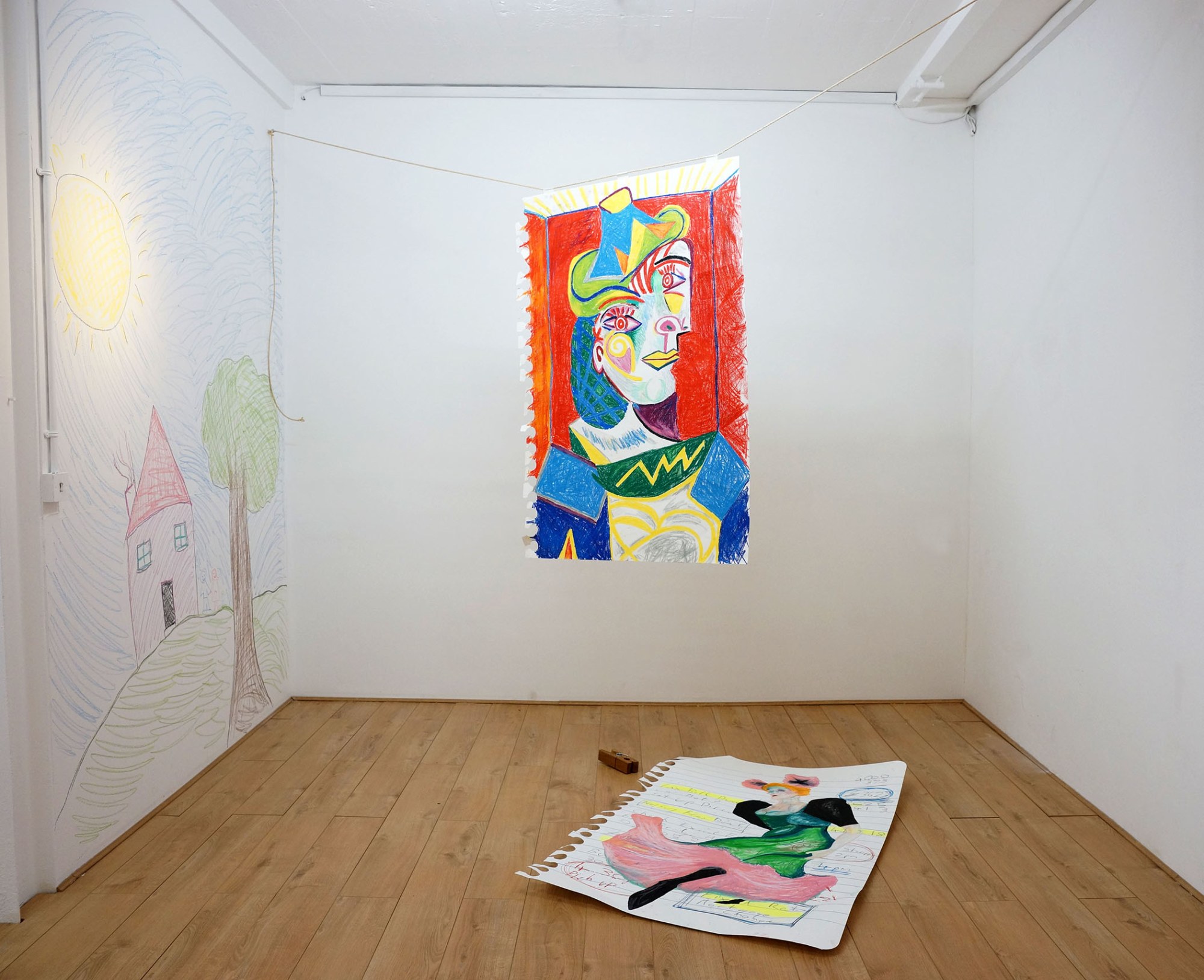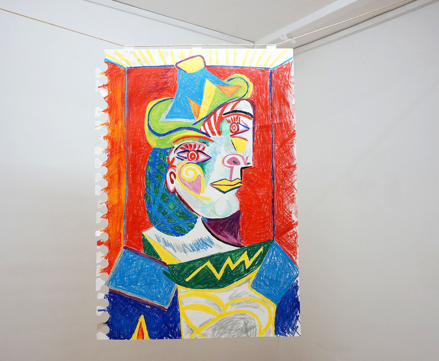 Wax and pigments on hand cut paper