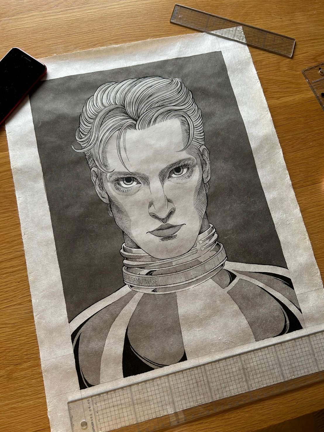 Suihi paint (dyed mud), Sumi ink on Mino-washi