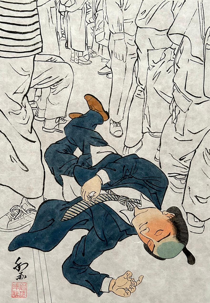 Suihi paint (dyed mud), Sumi ink on Mino-washi