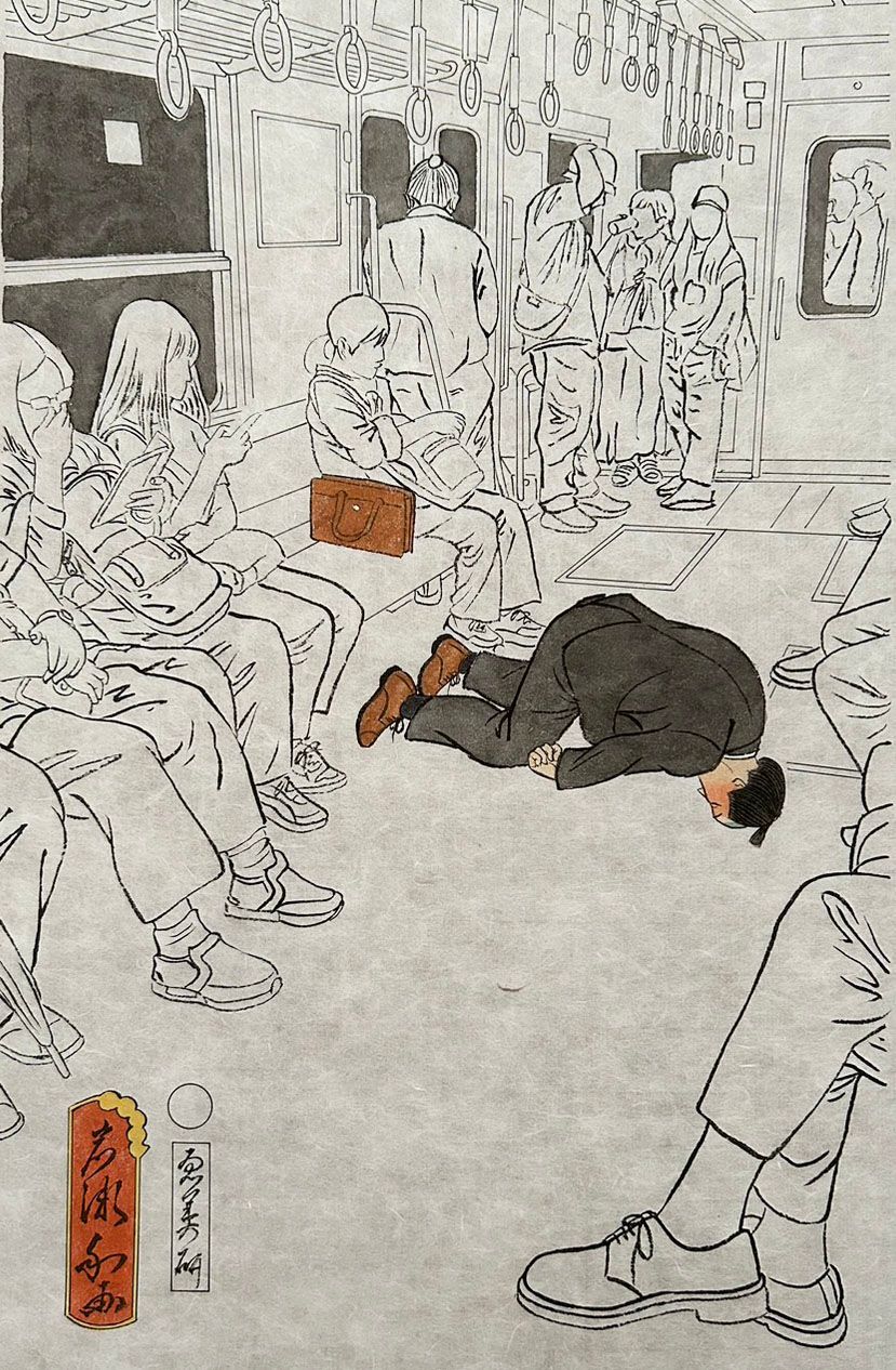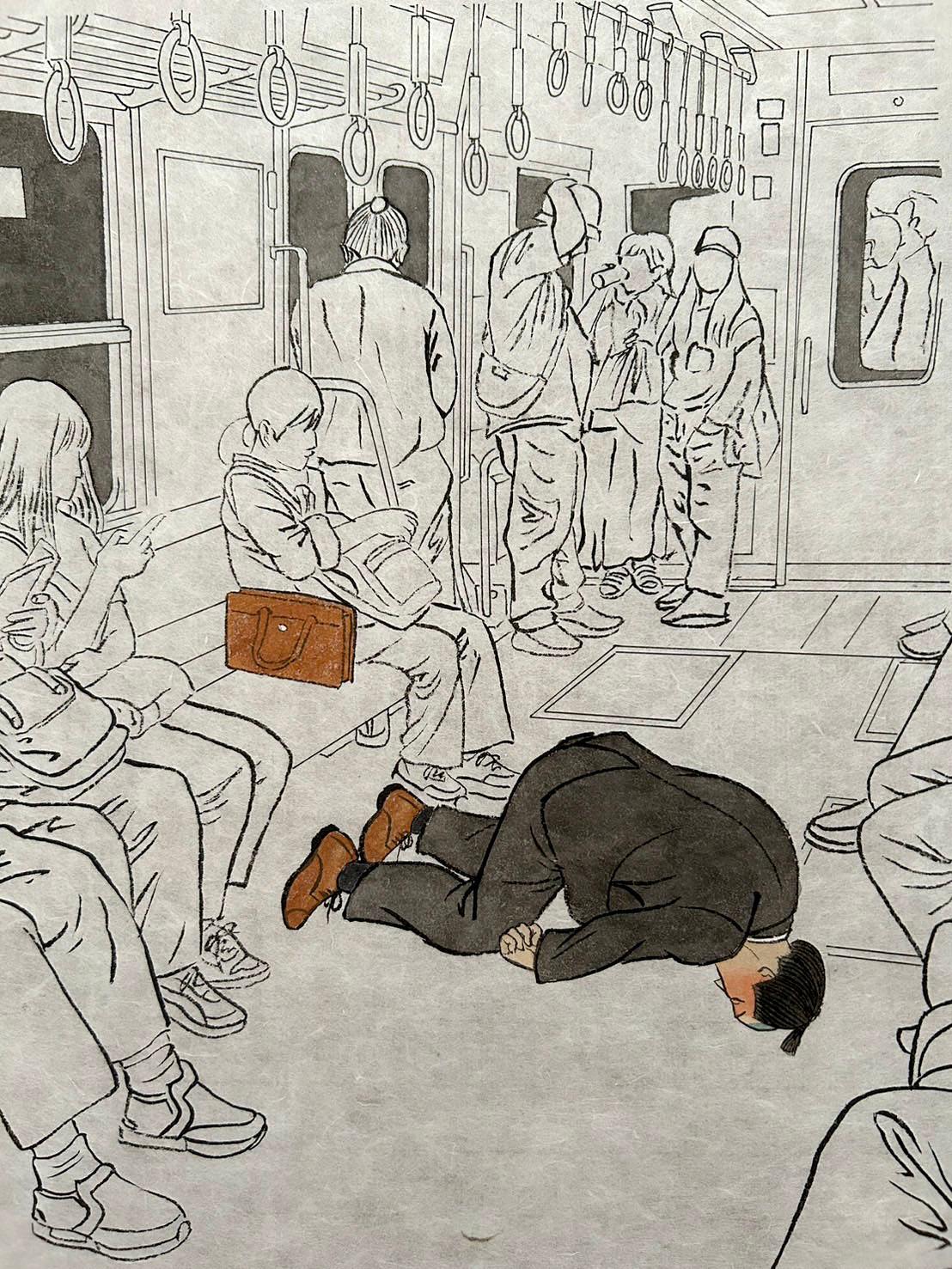Suihi paint (dyed mud), Sumi ink on Mino-washi