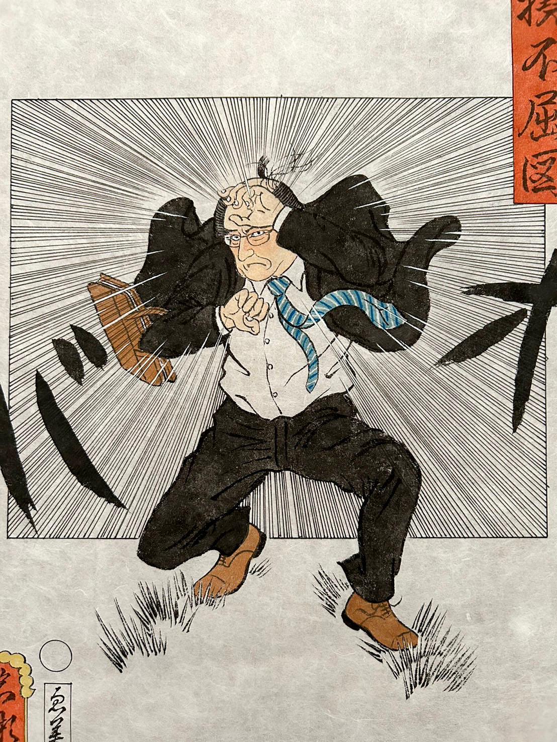 Suihi paint (dyed mud), Sumi ink on Mino-washi
