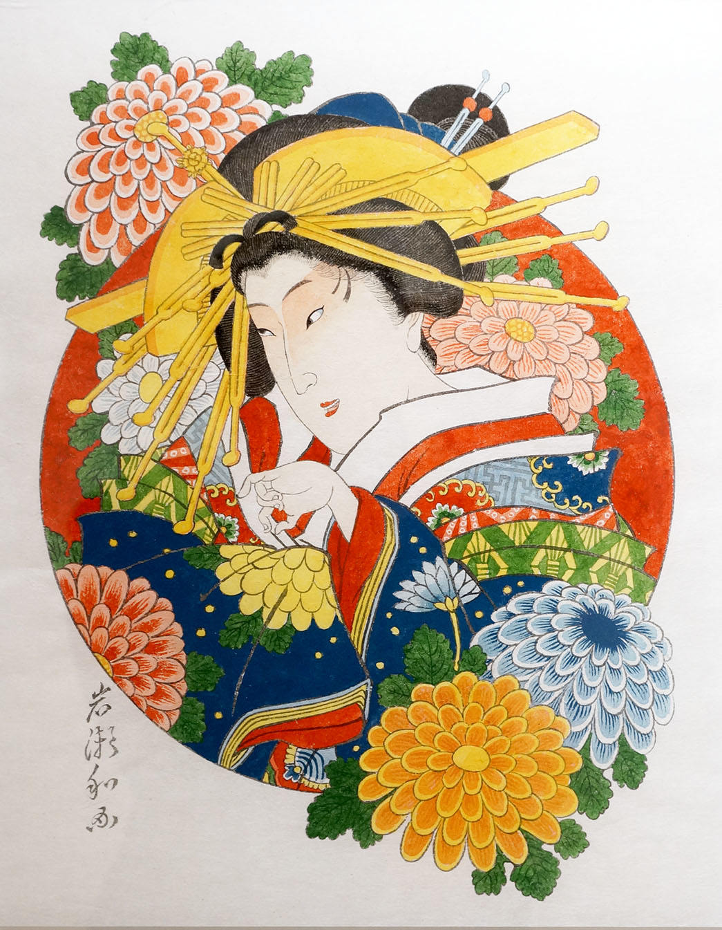 Suihi paint (dyed mud), Sumi ink on Mino-washi